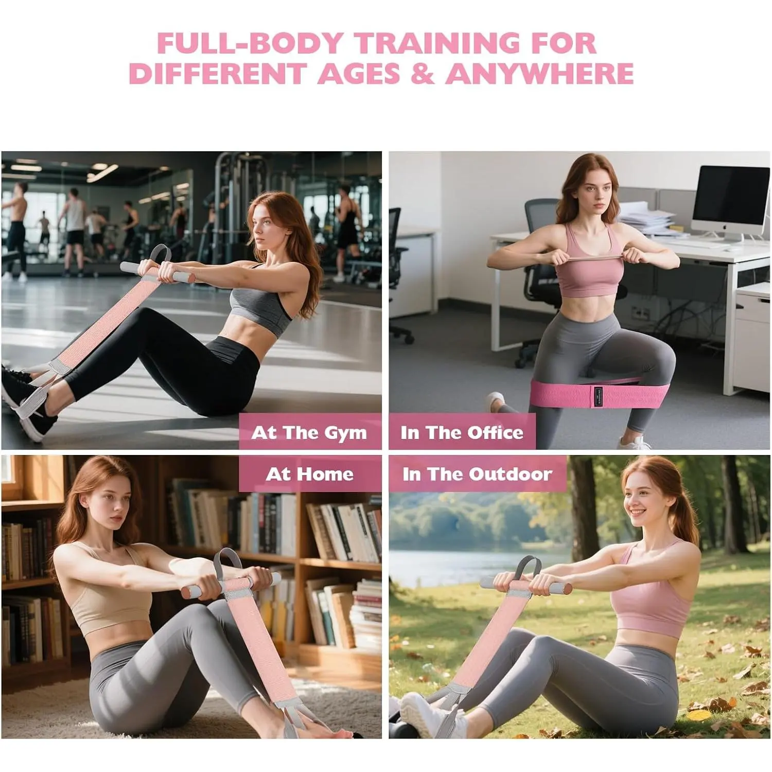 [Portable & Travel-Friendly Design]This lightweight and portable resistance band fits easily into your bag, making it perfect for workouts on the go. Enjoy slimming training anytime, anywhere. You can use these resistance exercise band sets in the privacy of your home, hotel room, office, or even outdoors.