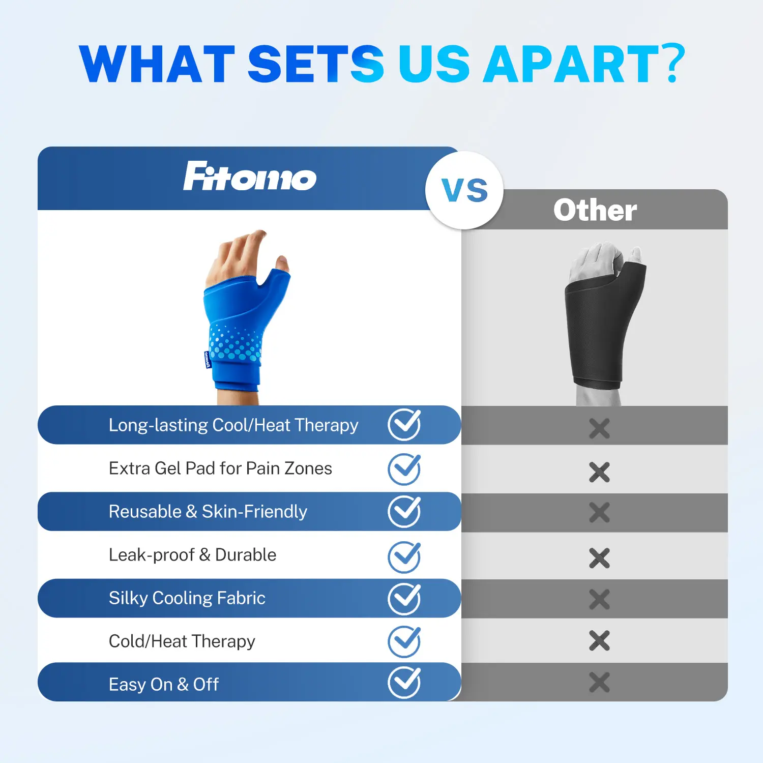 Hot or Cold: Your Therapy, Your Choice Whether you need to cool down sore wrists after a long day or warm up stiff muscles to boost flexibility, the Fitomo Wrist Wrap switches between hot and cold therapy effortlessly. One single wrap unlocks endless ways to ease wrist discomfort.