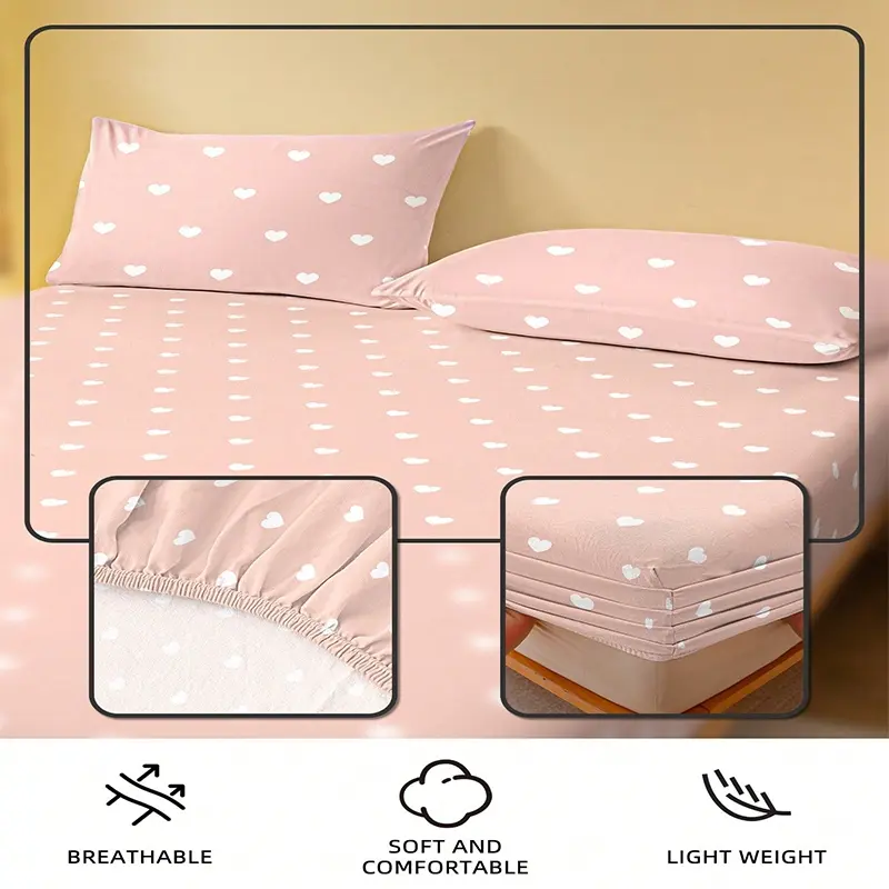 1PC Printed Fitted Sheet, Machine Washable, Soft & Comfortable, Anti-Slip & Non-Curl Design, Warm & Skin-Friendly for All Seasons, Festive Home Decor, Soft Breathable Sheet (No Pillowcase Included)