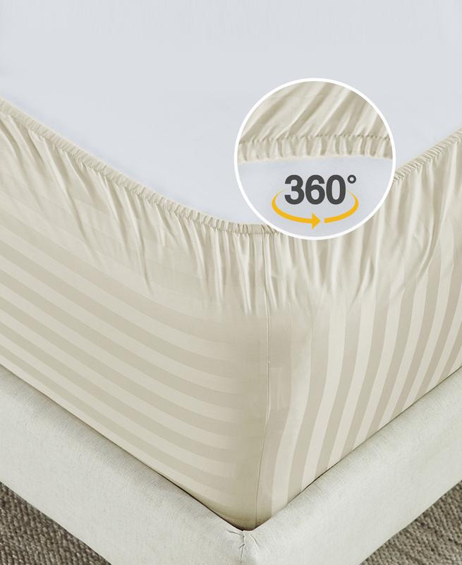 ·Damask striped 500-thread count - 100% cotton sateen Fitted Sheet - lightweight, cooling year-round comfort