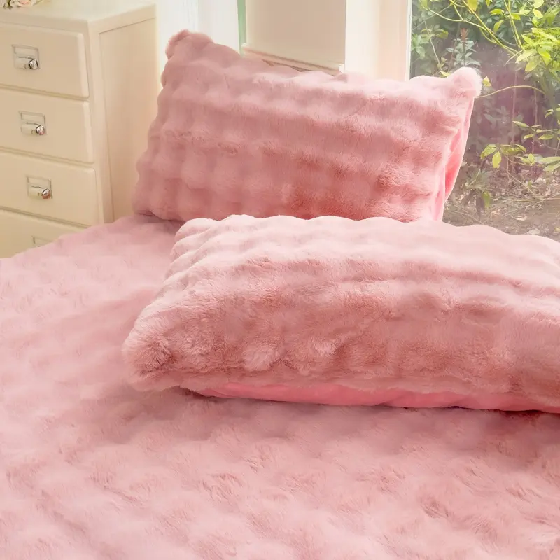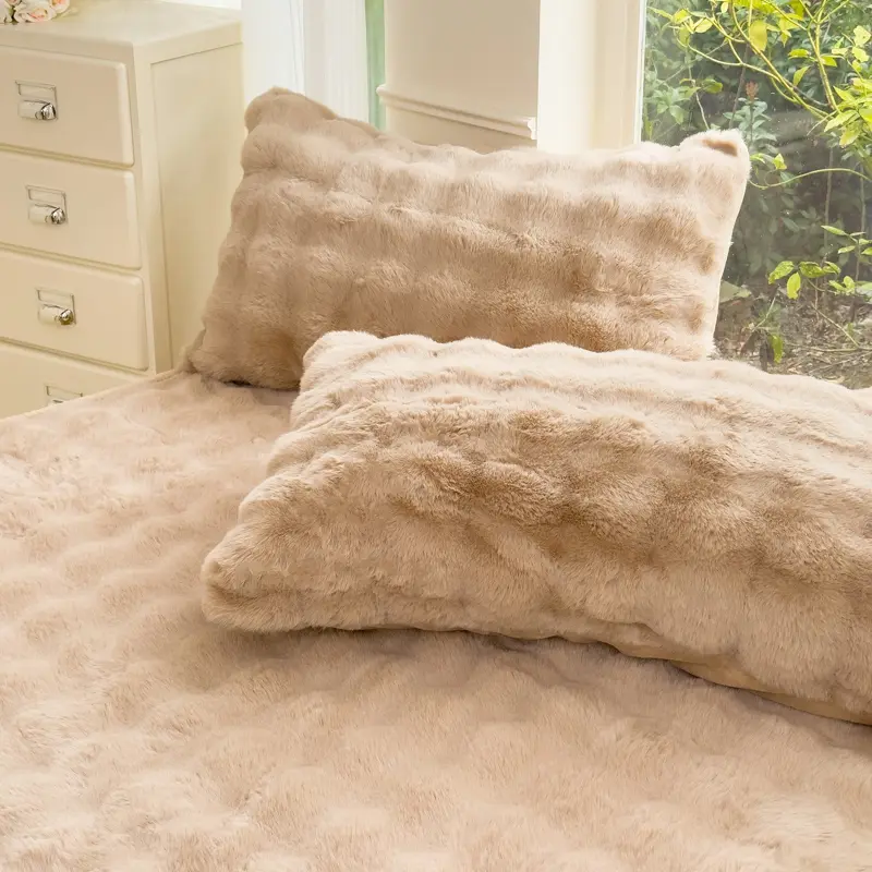 Crafted from soft, plush fabric, this bedding set offers a fluffy and comfortable tactile experience. The unique texture of the faux rabbit fur makes your bed feel incredibly warm and inviting—simply irresistible to curl up in.