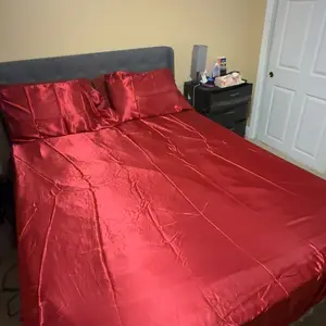 Great look feels nice and my girl loved it!!! Very pleased amazing price thank you TikTok… I bout it for king size because mine is a queen 14 inch thick so the king size covers the whole mattress. I really like the shiny color and softness of the silky material! 👍🏽Buy it I recommend this one!!!