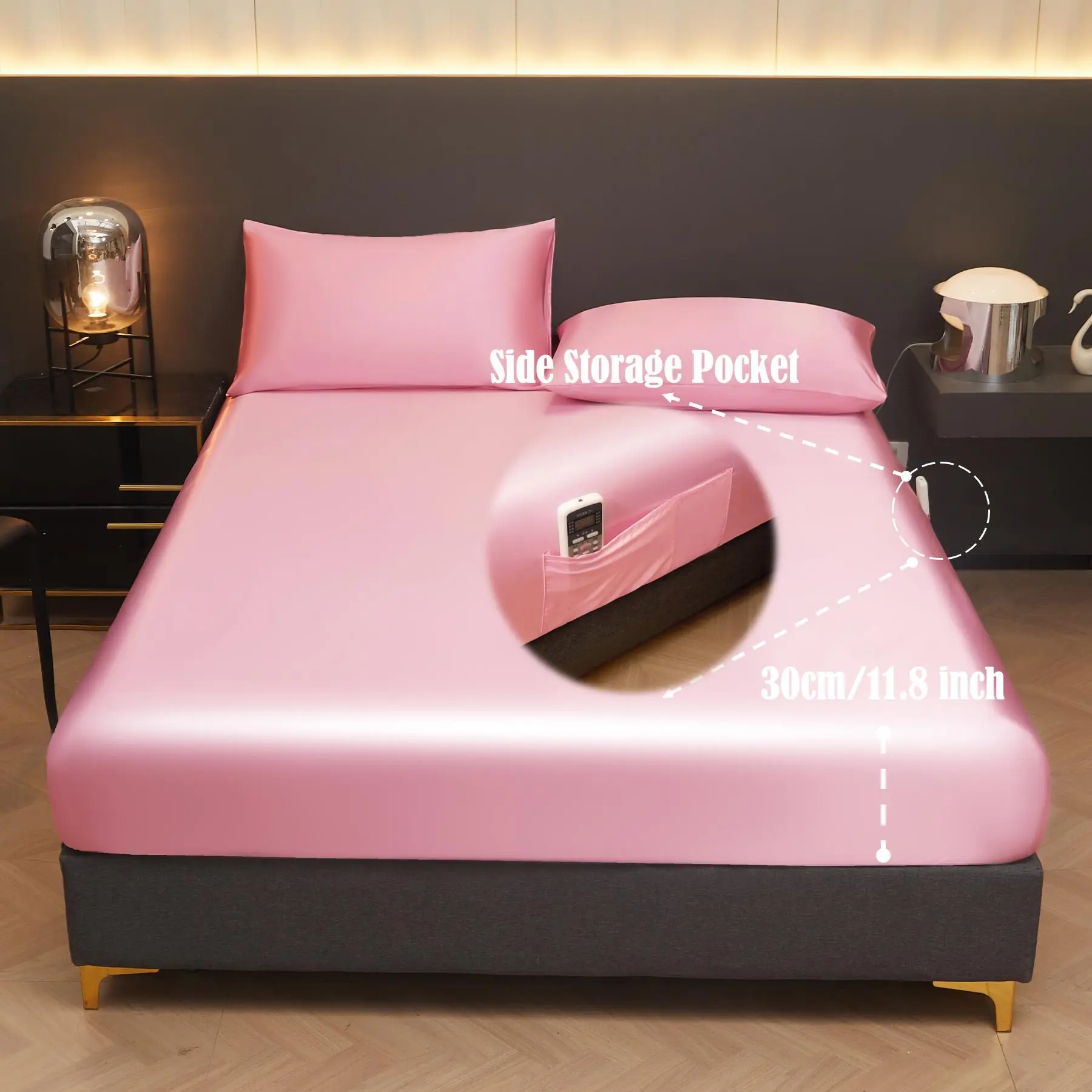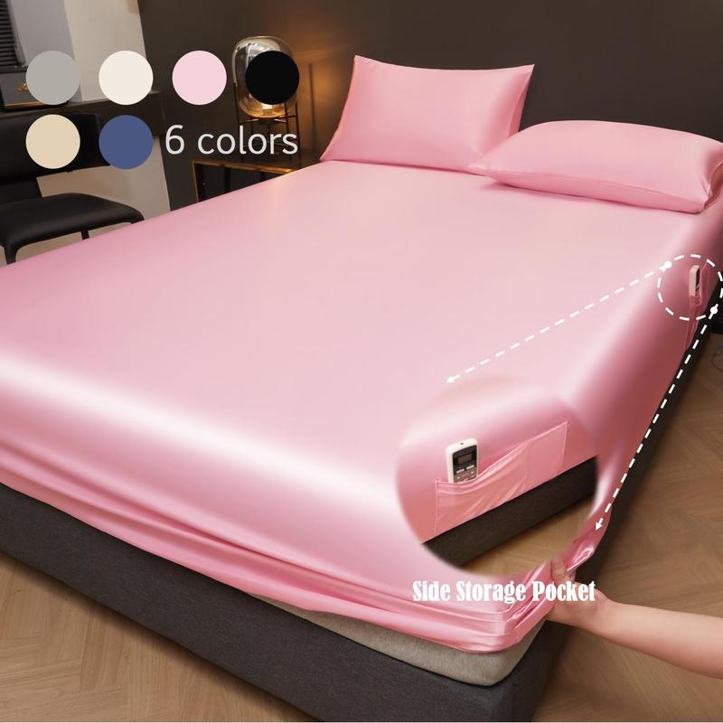I like the fitted sheet on my bed looks good nice and shiny and silky. The sheet fits my bed and it has side pockets It dealt good to sleep on.