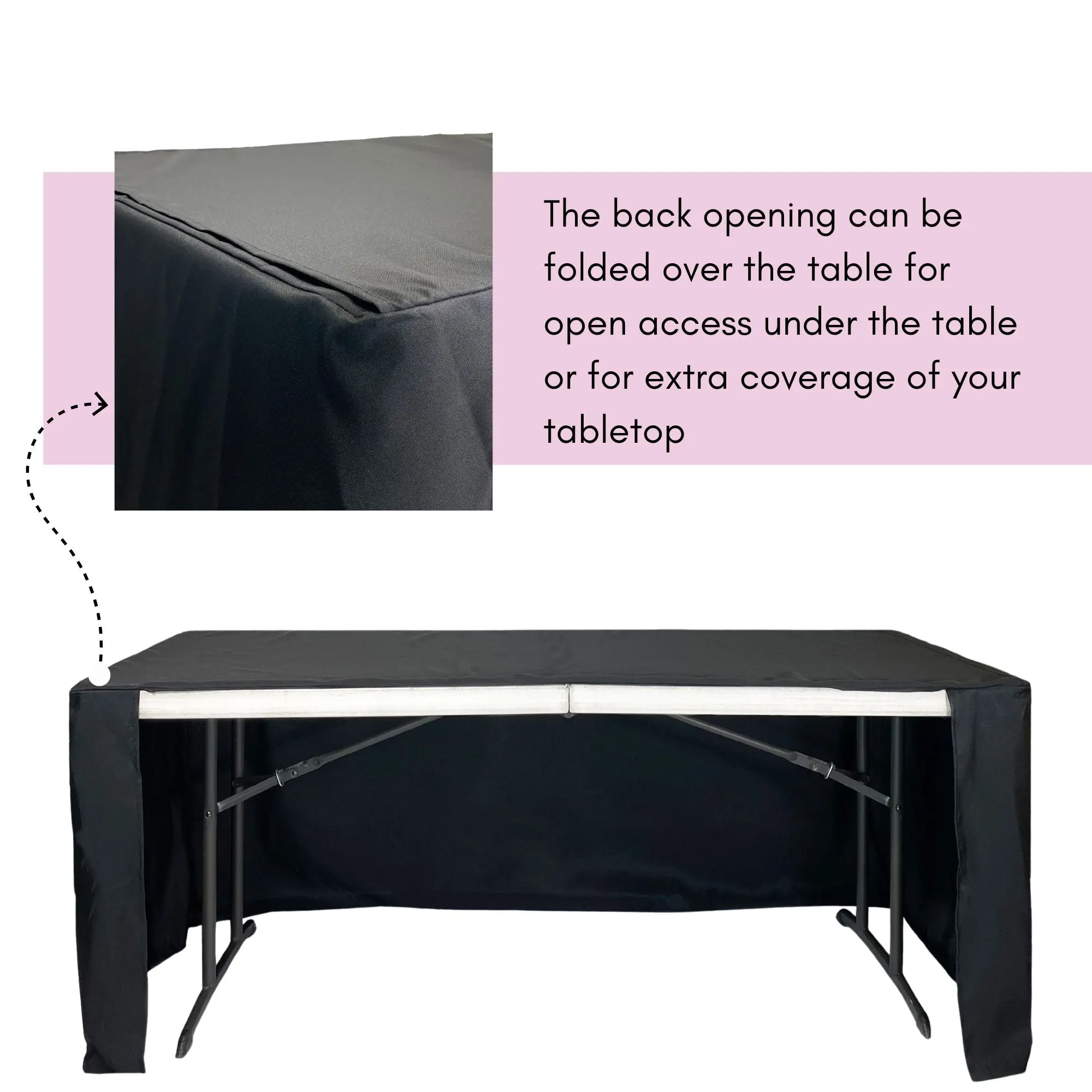 Add a touch of elegance to any event with our 6 ft Slit Open Back Rectangular Fitted Tablecloth. Precisely made for banquet 72” (L) x 30” (W) x 30” (H) rectangular tables and made from 100% woven polyester, this tablecloth is durable and easy to care for, making it perfect for both indoor and outdoor events. The 180 GSM material is thick enough to provide full coverage of your table, while the hemmed finish gives the tablecloth a clean and professional look. Additionally, the professional-grade material is the ideal choice for companies looking to print logos and will provide supplementary professionalism for any corporate event.