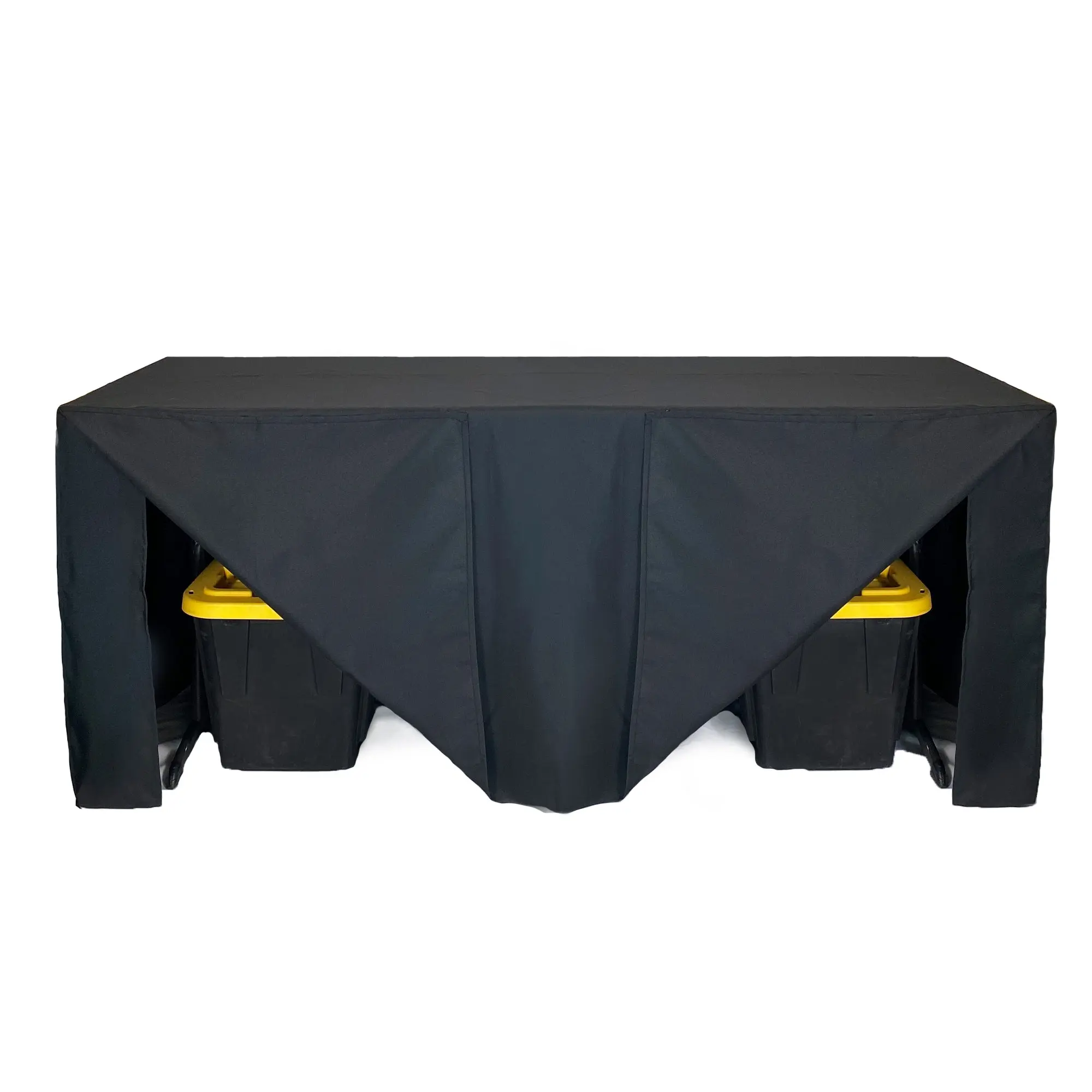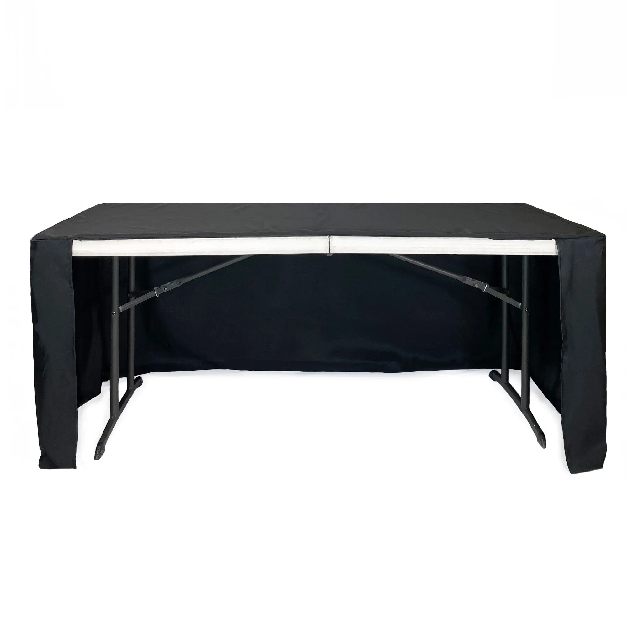 One of the standout features of this tablecloth is the slit open back, which allows for comfortable seating and easy access to the table's storage or power outlets. This makes it ideal for use at trade shows, conventions, or any event where power or storage is needed. Whether you're hosting a formal dinner party or a casual outdoor event, this tablecloth is sure to make a statement.