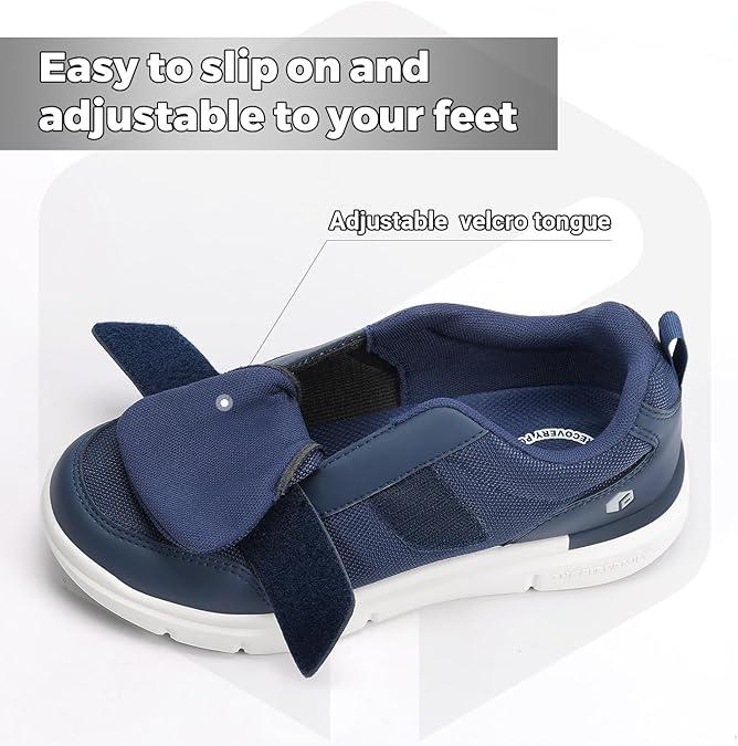 The top flap closure replaces laces, making it easier to put on and off. You can adjust the tightness to your preference. This feature ensures comfort and ease of use for men with diabetic issues.