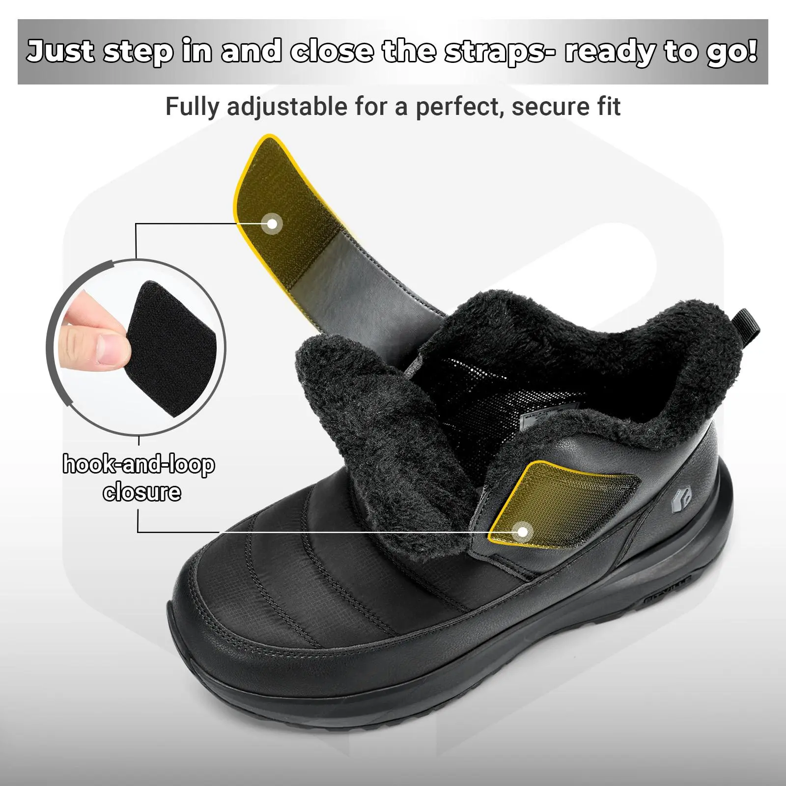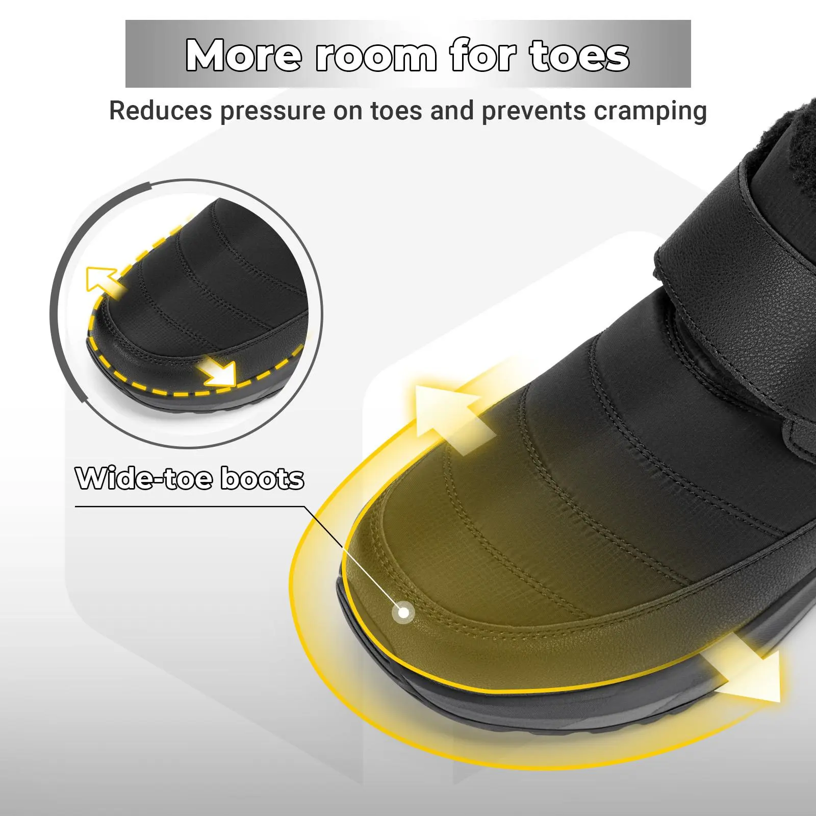 Winter boots for men wide width feature a wide entry and adjustable hook-and-loop straps. They offer easy on/off—even with gloves—and a secure, personalized fit. Step into comfort effortlessly. 🧦