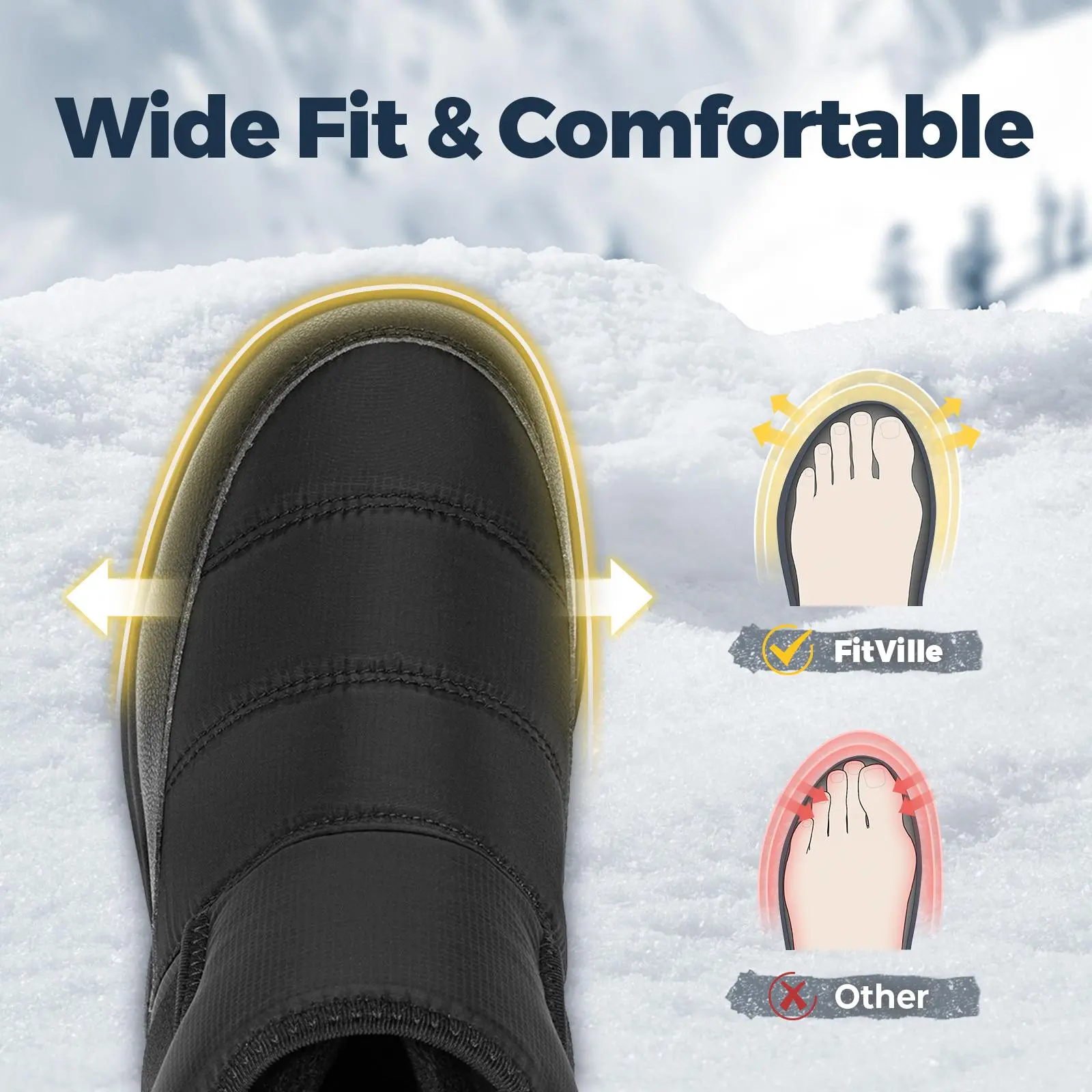 ·Water-Resistant Upper: The FitVille men's cozycore winter boots V14 feature a water-resistant upper that keeps your feet dry and protected from snow and slush. Compared to other FitVille shoes , we recommend sizing up half a size.