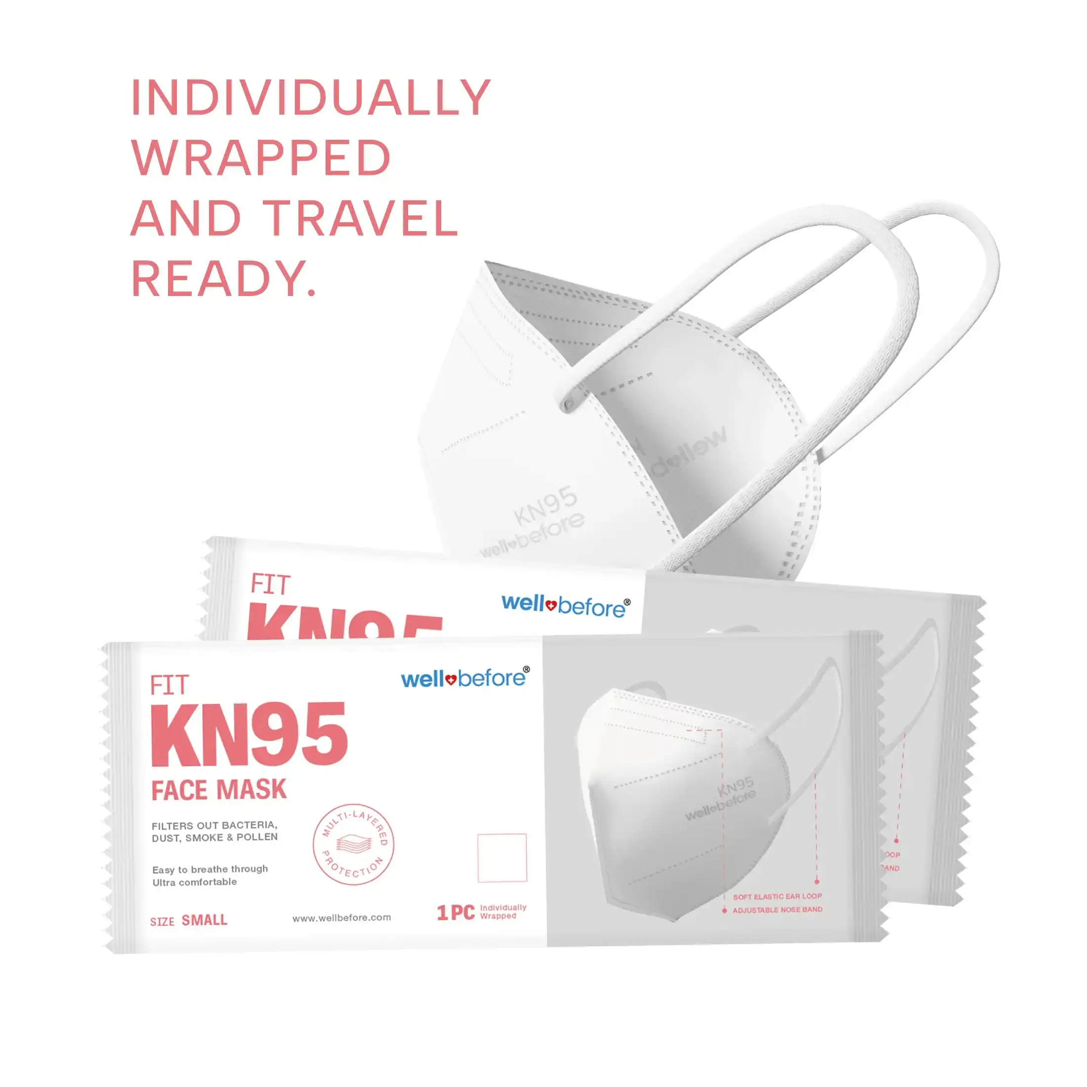 Package: Each mask is individually wrapped, keeping the mask clean and safe in backpacks and transit.
