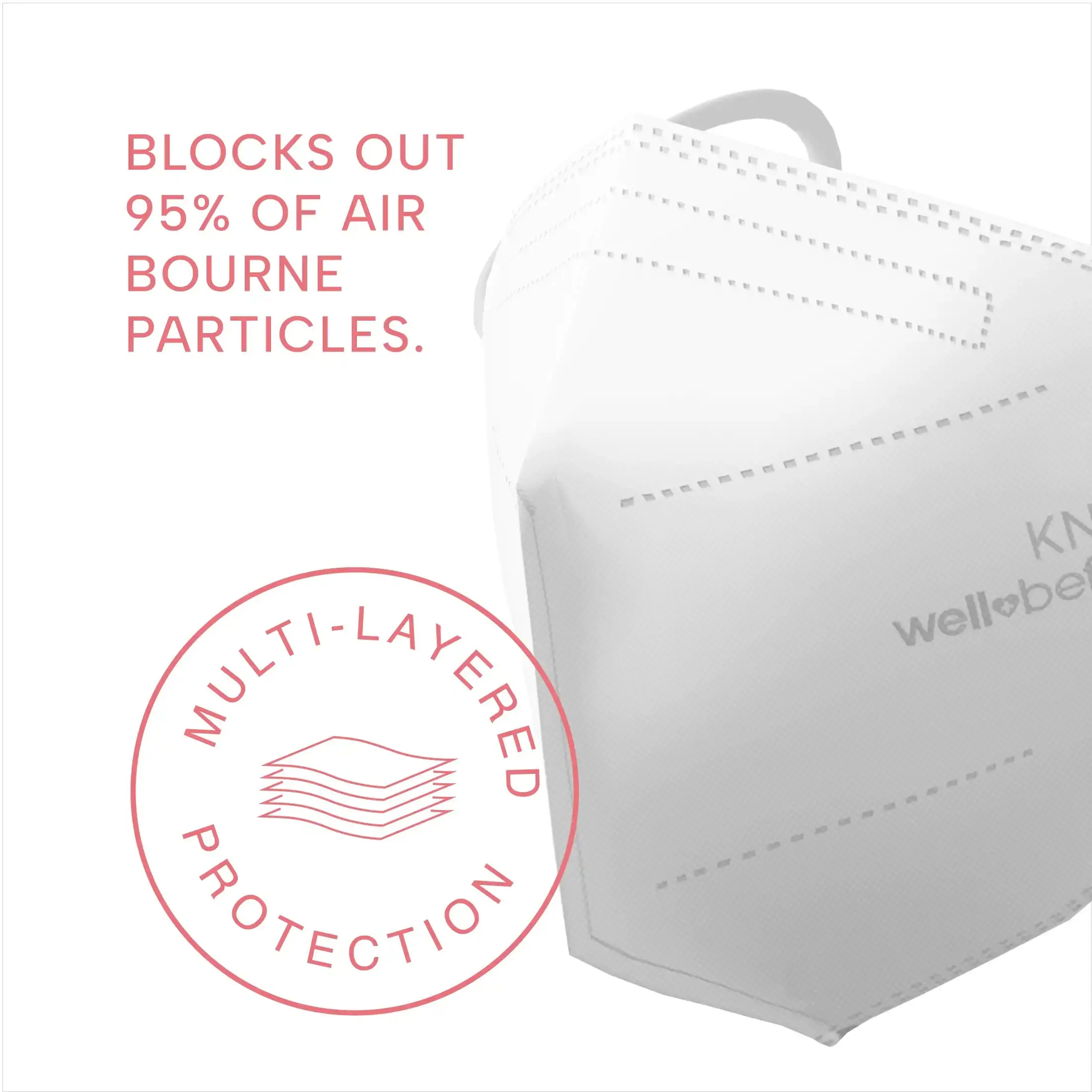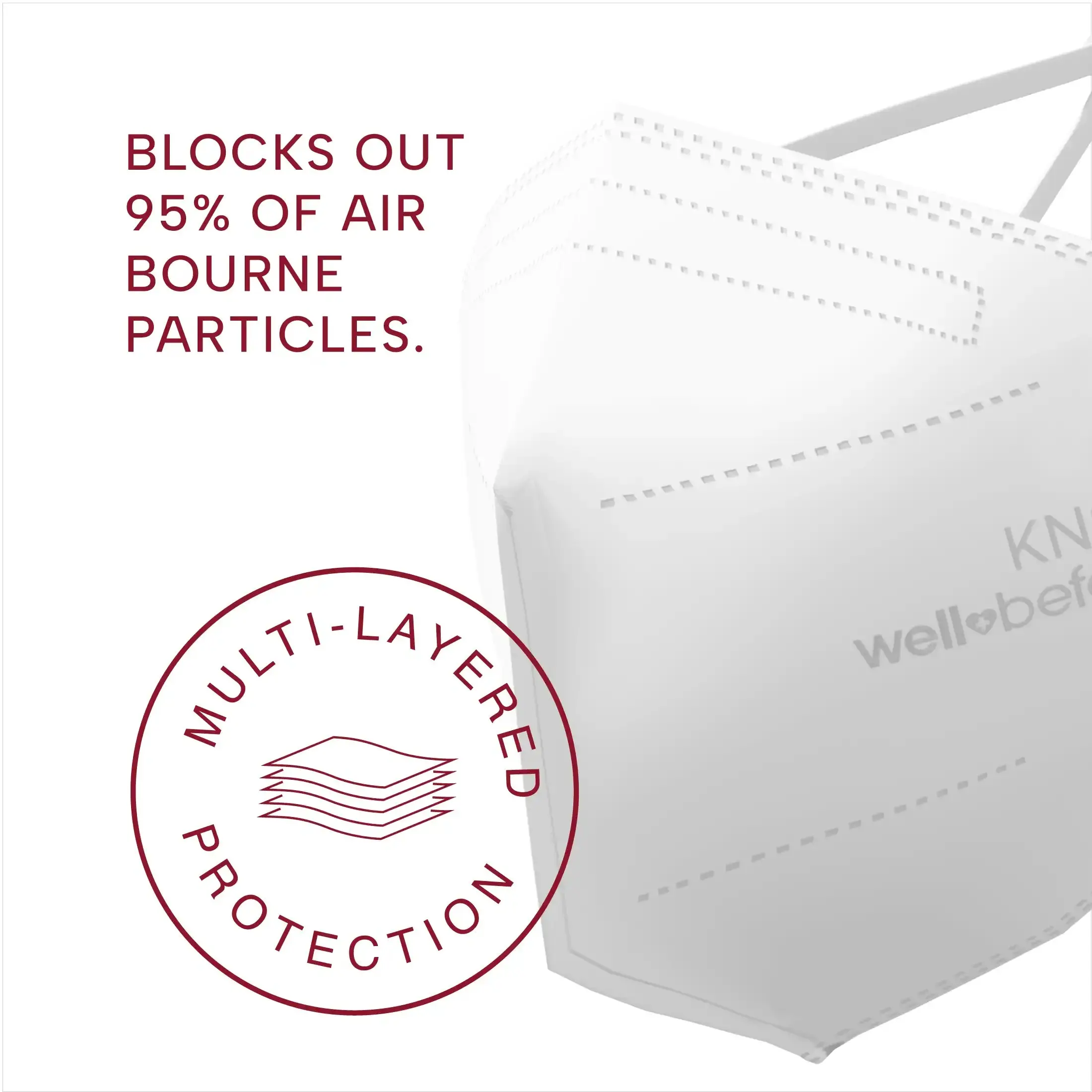 Our KN95 masks offer five-layer protection, including two premium quality melt blown layers for extra protective filtration against harmful air particles. And since the fabric is melt blown and non-woven, it has several features that make wearing and breathing more comfortable, like soft, skin-friendly cloth layers.