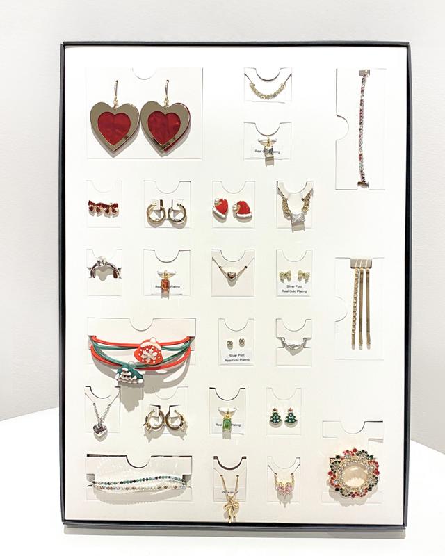 - 24 Days of Jewelry Advent Calendar: Immerse yourself in 24 days of pure excitement as you uncover a unique piece of jewelry hidden behind each door. From dainty earrings and sparkling pendants to elegant bracelets and intricate rings, each item is thoughtfully selected to bring joy and glamour to your holiday season.
