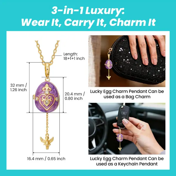 Our Lucky Egg collection features 12 beautifully designed pendants, each a true work of art crafted by our talented designers. Each piece is a custom-designed locket, making it a unique and interactive treasure. These lockets are not just necklaces—they’re versatile pieces of jewelry that can also be used as bag charms or keychains, perfect for any occasion.