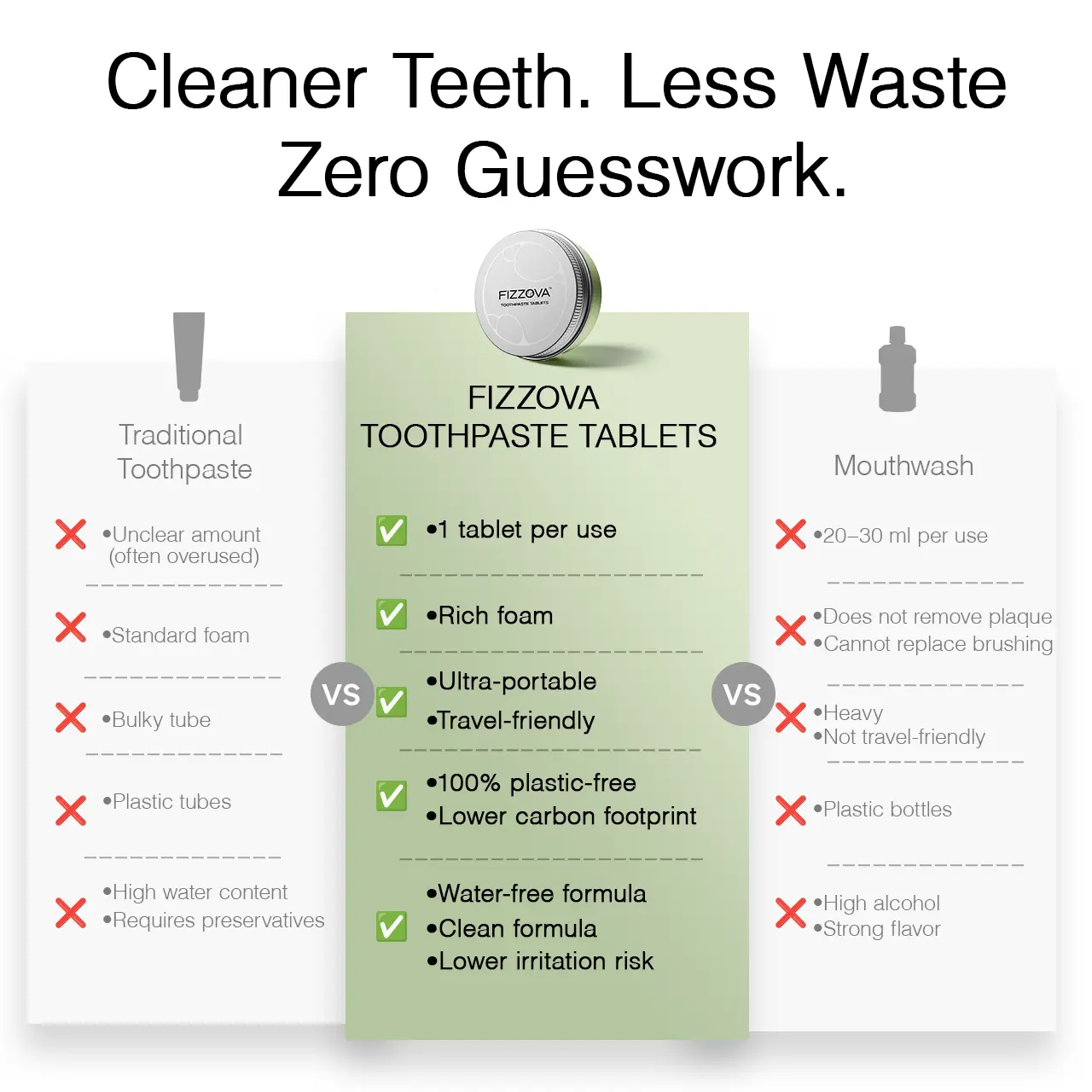 I travel a lot for work and got tired of bringing toothpaste tubes with me. Decided to try the 3-pack of FIZZOVA and it’s actually really convenient. The tins feel sturdy and look pretty nice too. The tablets fizz up well and leave my mouth feeling clean. Also like that there’s no plastic packaging.