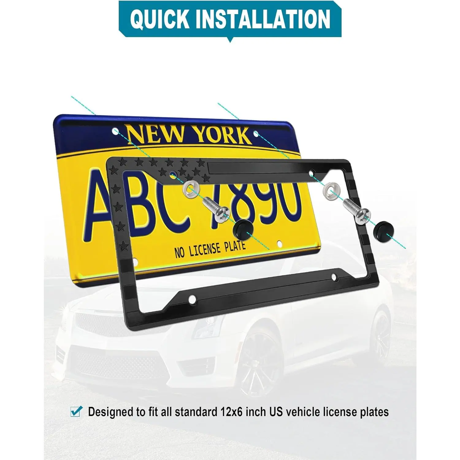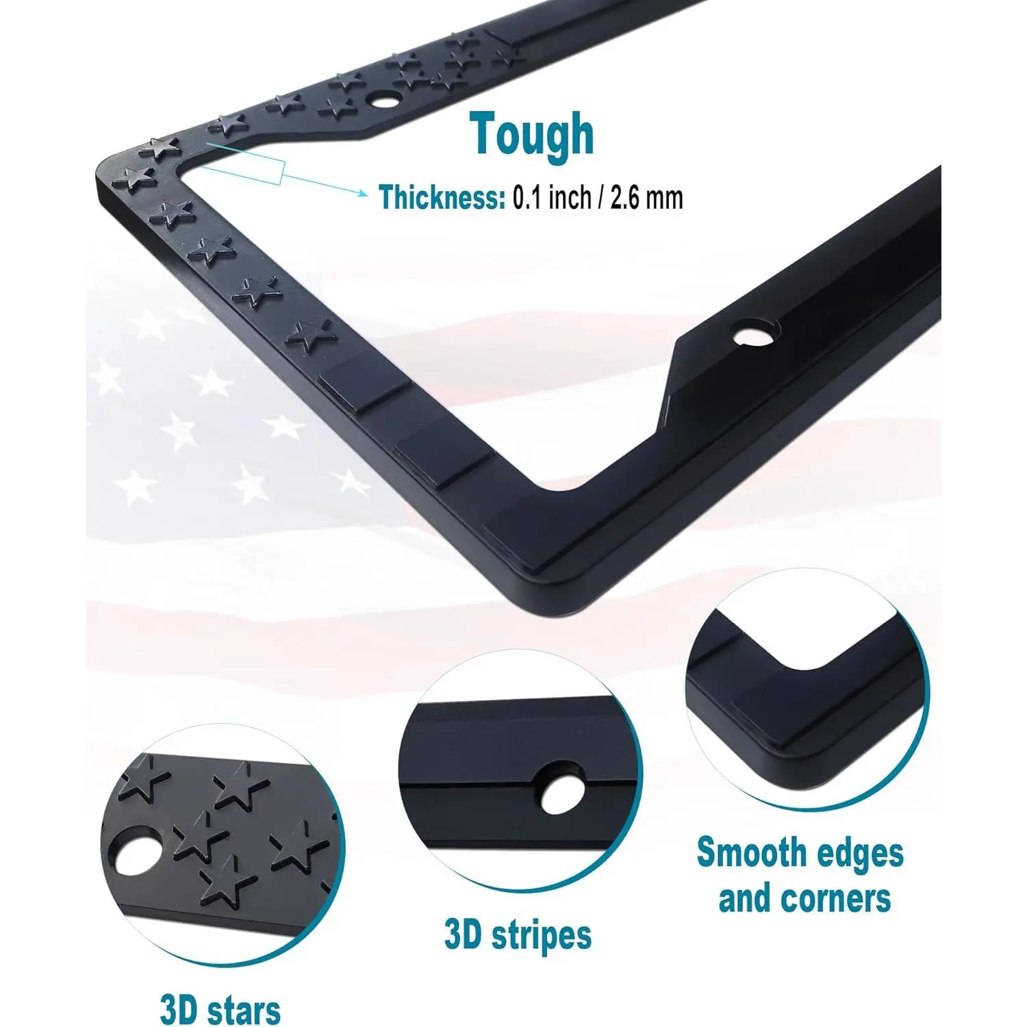 Patriotic Design & Rustproof Protection- Show your patriotism with flag graphics on a sleek black background. The flag star stripe on the black matte license plate holder is integrally formed, not printed or coated, and will not fade or fall off, providing long-lasting decoration and protection