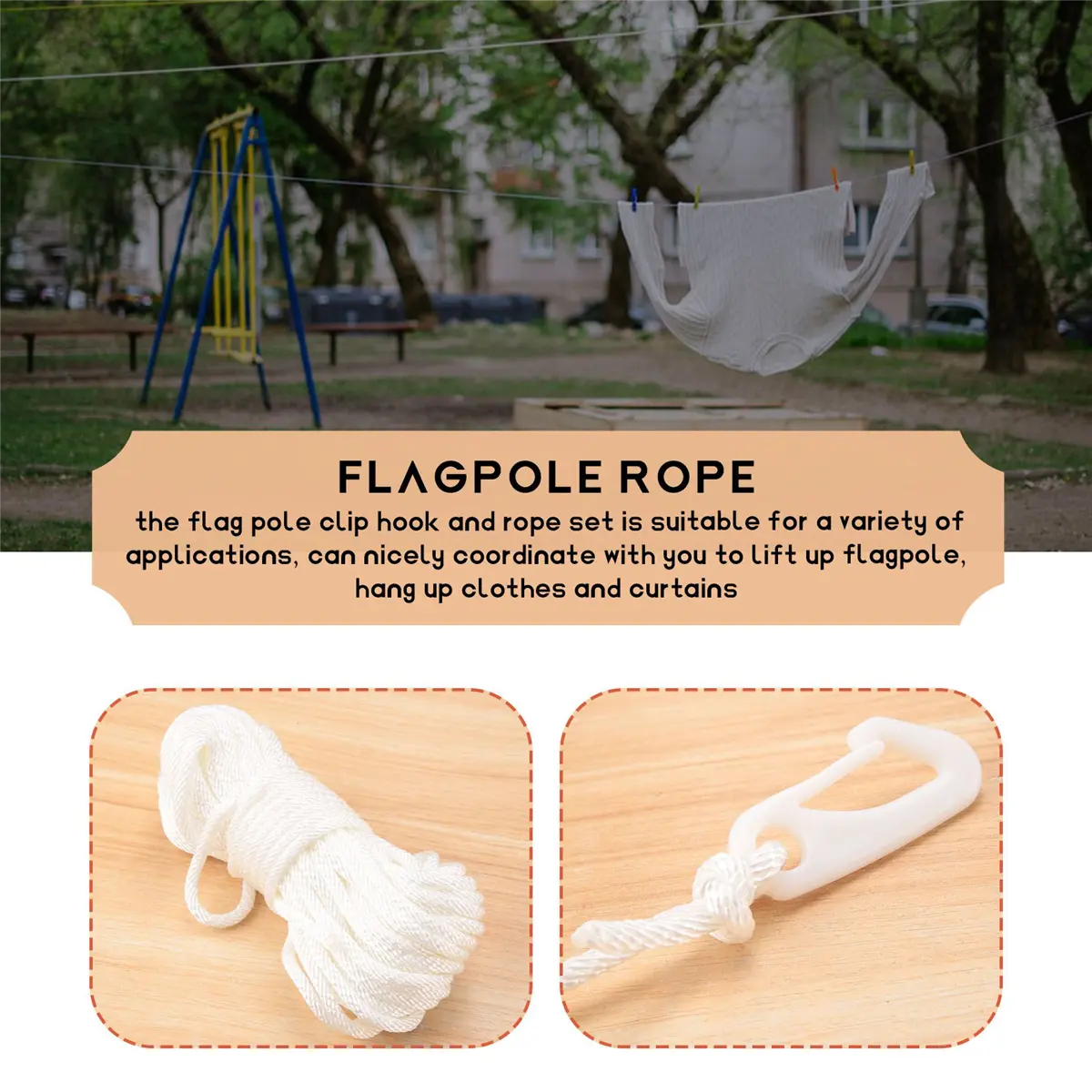 Wide range of usages: the flag pole clip hook and rope set is suitable for a variety of applications, can nicely coordinate with you to lift up flagpole, hang up clothes and curtains, drop and weigh , reusable and convenient, but not suitable for heavy equipments
