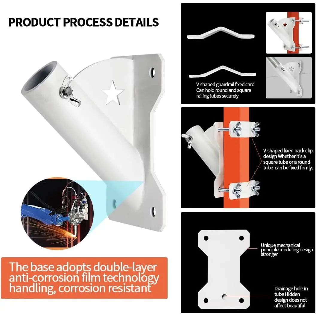 🔷Many Special Features - 🚩Lots of improvements not found on others like hollowed out decorative 5 point , butterfly shaped screw for securing flagpole, I-shaped design for greater strength, V-shaped clip to allow both square and round tubes to be firmly affixed, and drainage hole for water release.