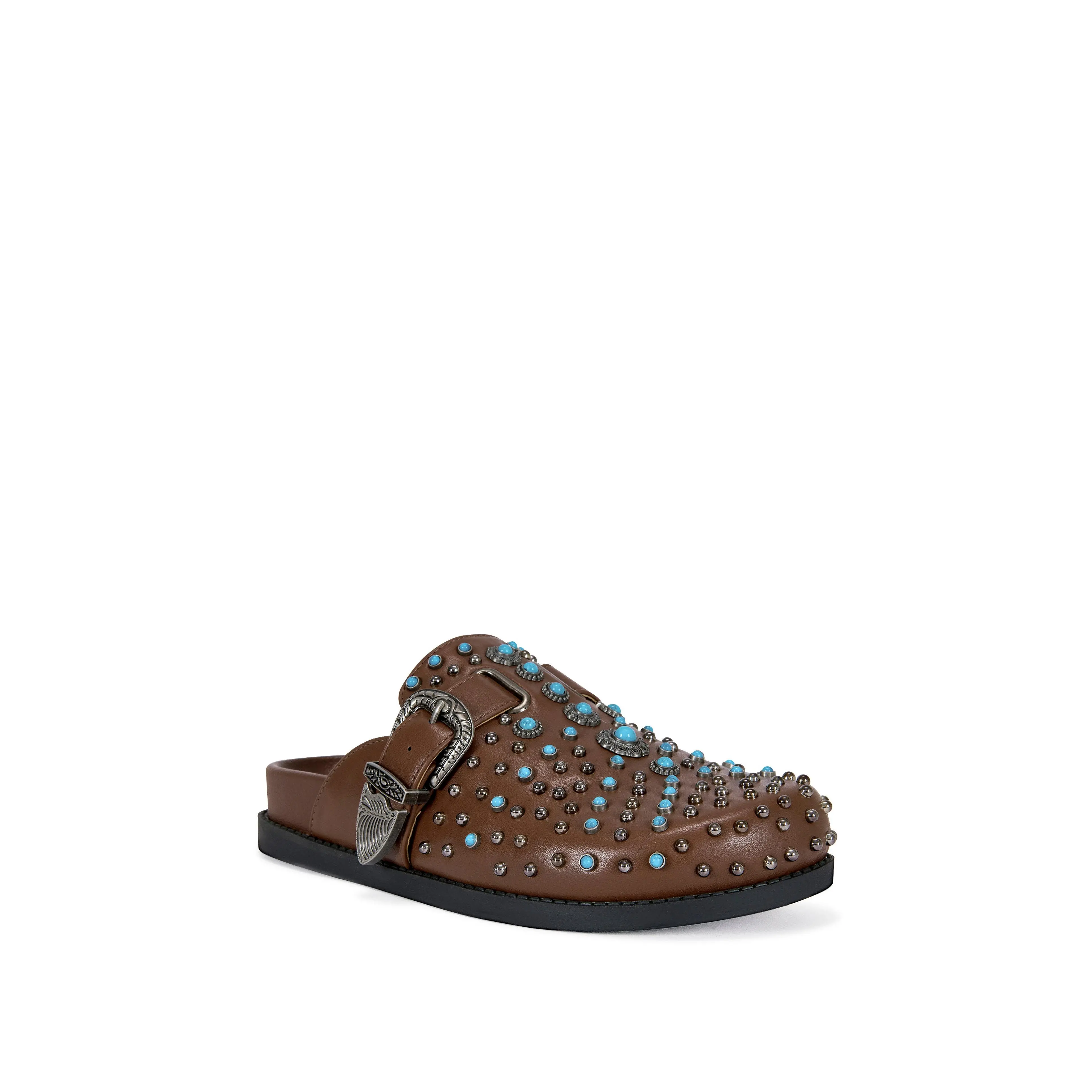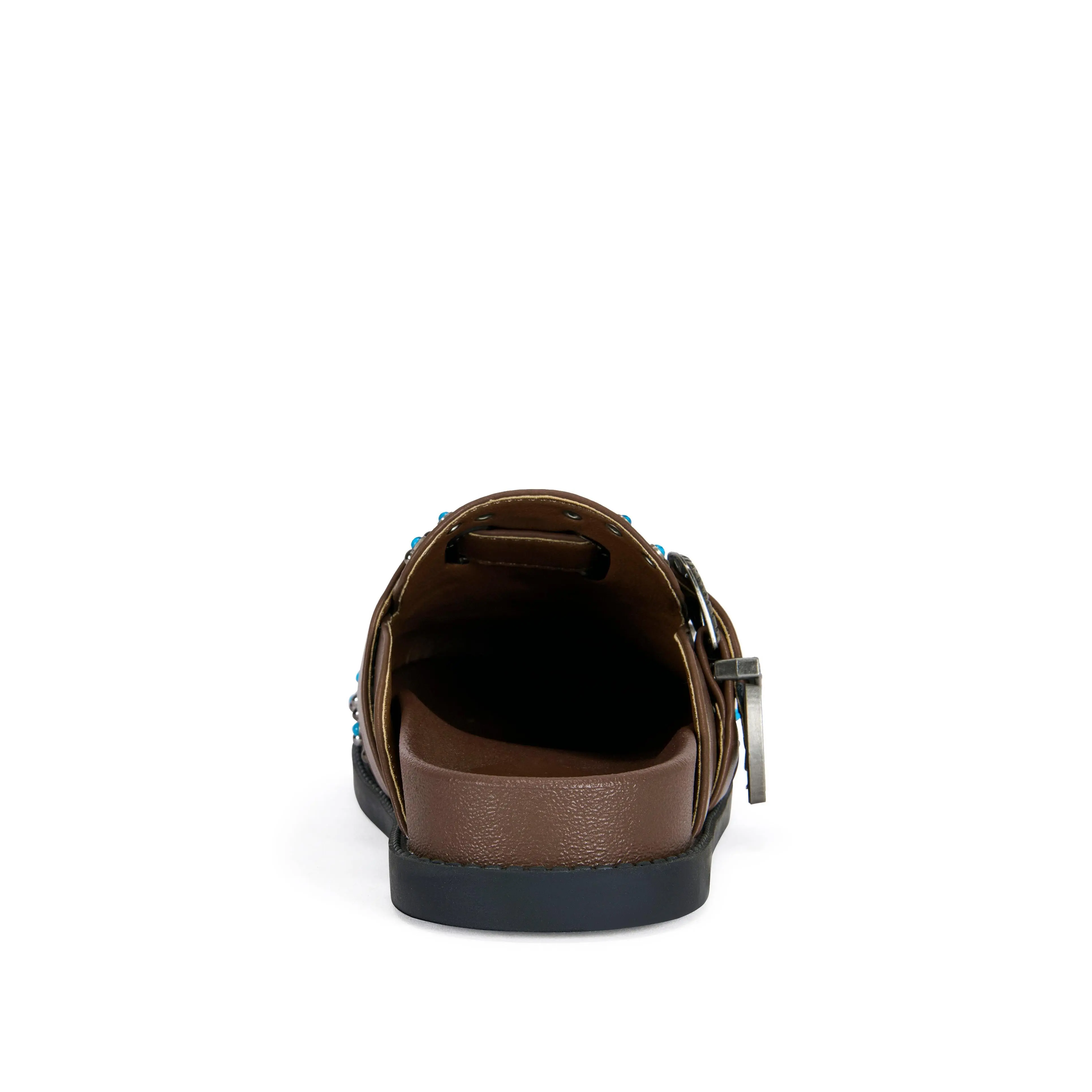 FLAIR-BROWN TURQUOISE FLAT MULE