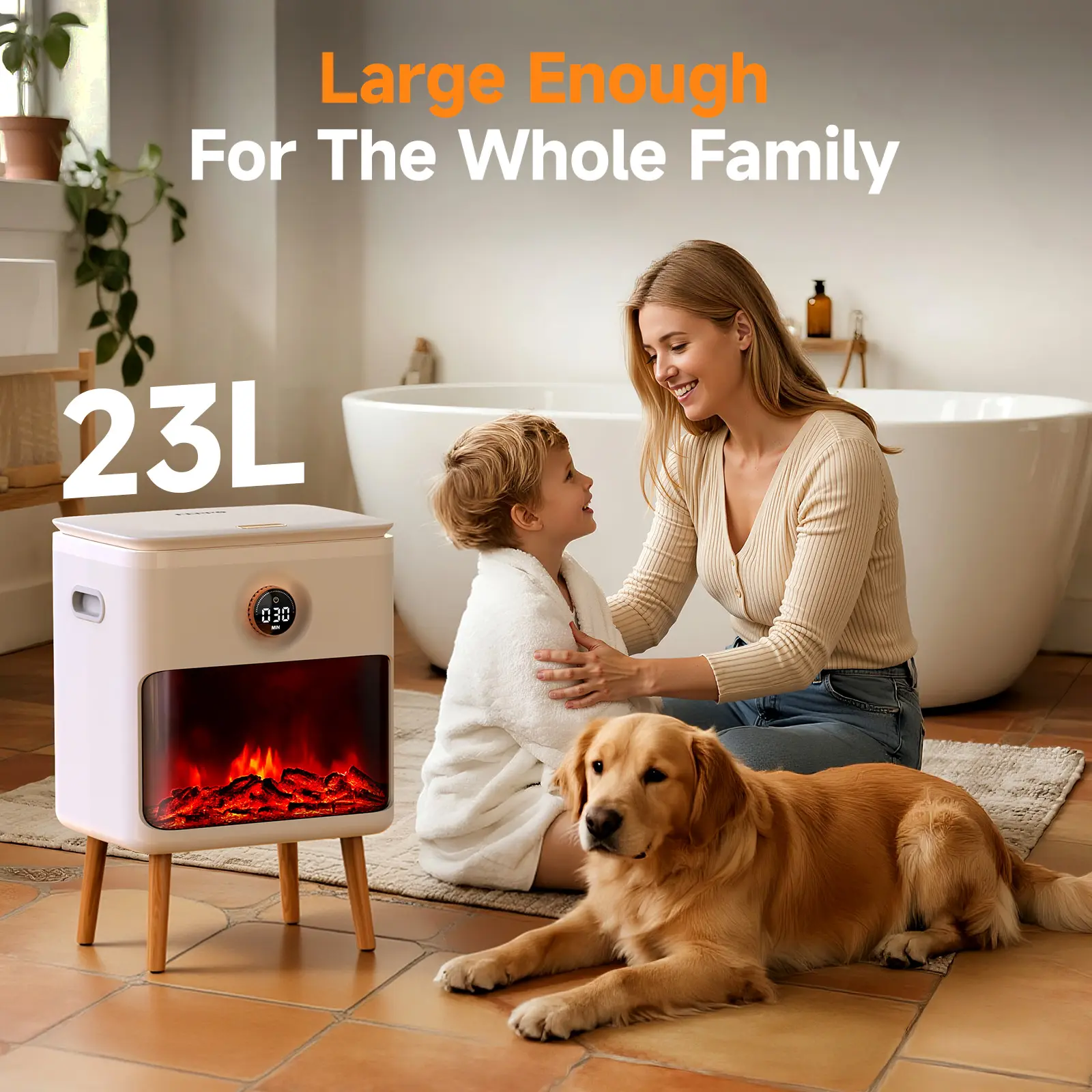 【Spacious 23 L/6.1 Gallon Towel Warmer】Fits 2–3 oversized 40" x 70" towels or 1 large towel with a bathrobe—perfect for family or shared bathrooms. Larger than standard 20L models, it delivers deep, even heat without cramming, ensuring every fiber is perfectly warmed. Transform your daily routine into a luxurious, comforting ritual. This isn't just a towel warmer; it's your personal sanctuary of comfort.