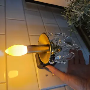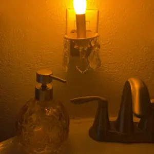 Absolutely love this little miniature chandelier. As a finishing touch to the room. Turns on when it gets dark and shuts off when it gets late.