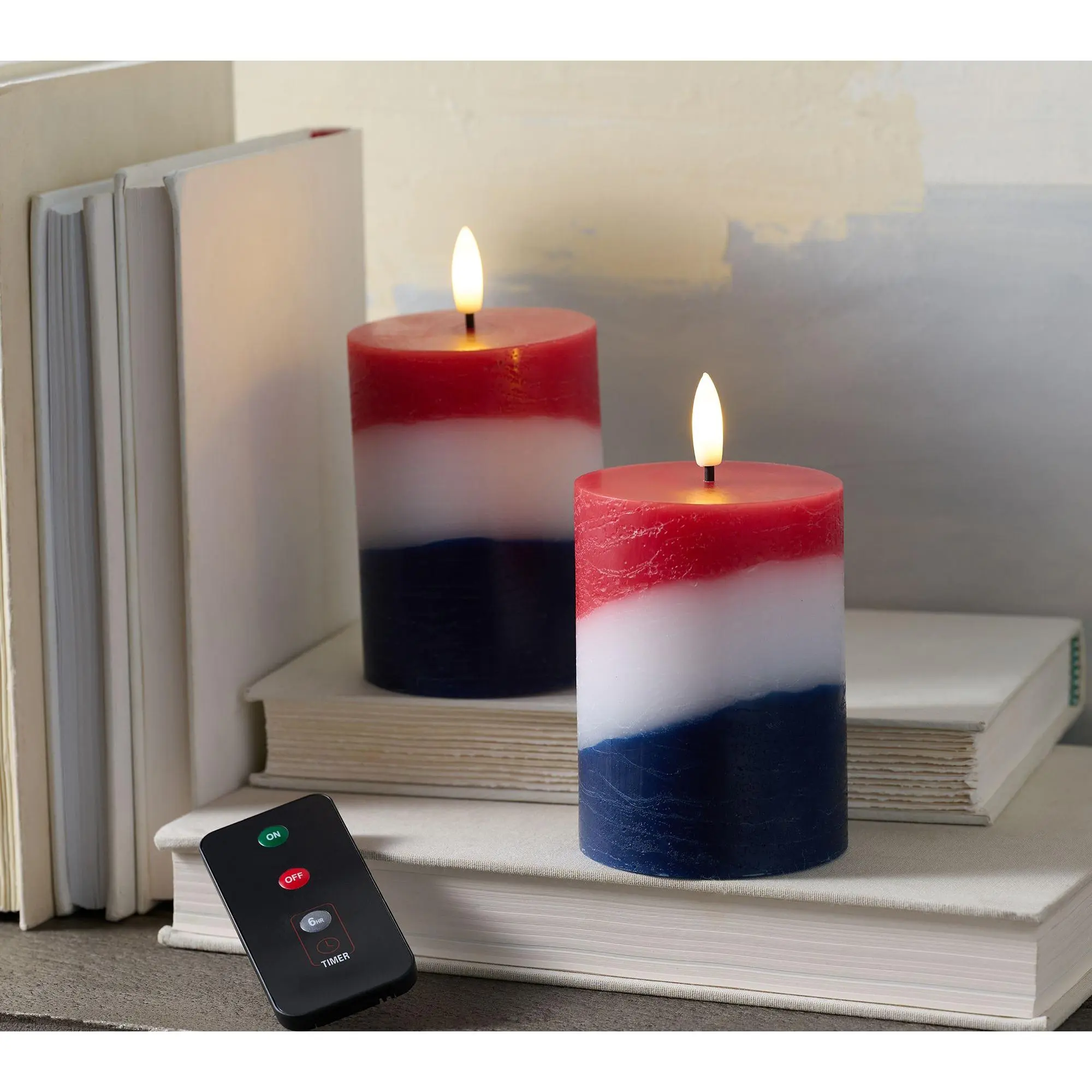 This Home Reflections Patriotic Flameless Pillar Candles will be the perfect addition to your home. Place on your coffee table or dining room table to brighten up your space.@QVC, Inc #candlesoftiktok #candles #mothersdaygift #flamelesscandle #candlepillar #homedecor