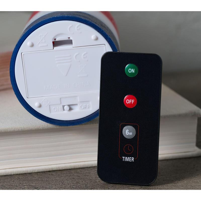 This Home Reflections Patriotic Flameless Pillar Candles will be the perfect addition to your home. Place on your coffee table or dining room table to brighten up your space. Comes in color choice of red/white/blue, all red, or all blue. Set measures approx. 3" diam. x 5" H and weighs around 1 1/8 lbs. Includes remote to turn item ON/OFF/6H TIMER. Imported.
