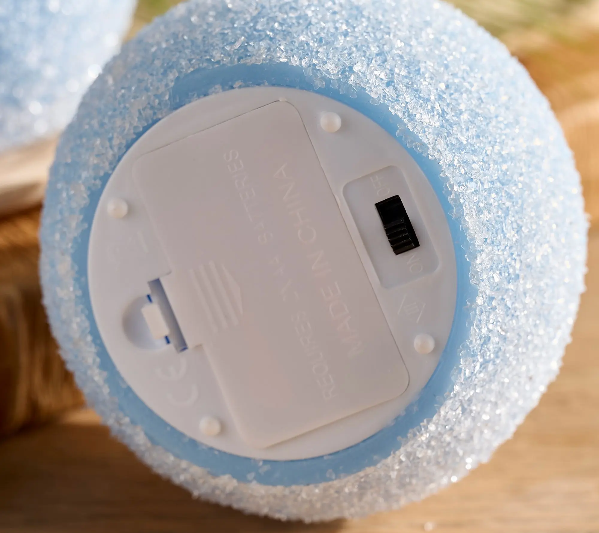 It’s winter, the snow is falling, and you have the beauty of the set of two sphere battery-operated candles, with this light dusting of crystallization glowing. Designed by Home Reflections and sold by QVC. They come with a remote control that offers a six hour timer function.  #flamelesscandle #christmasdecor #QVCLoyaltyProgram