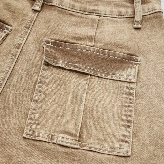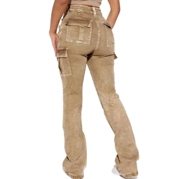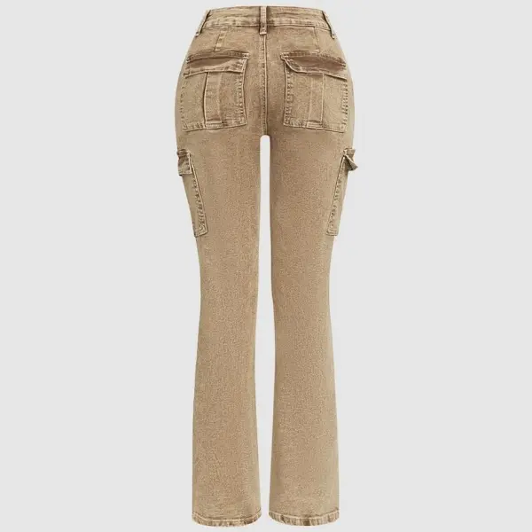 Flamingals flared jeans Wash Flap Pocket High Rise Flare Cargo Pants Fit Comfort Womenswear Bottom Casual Style