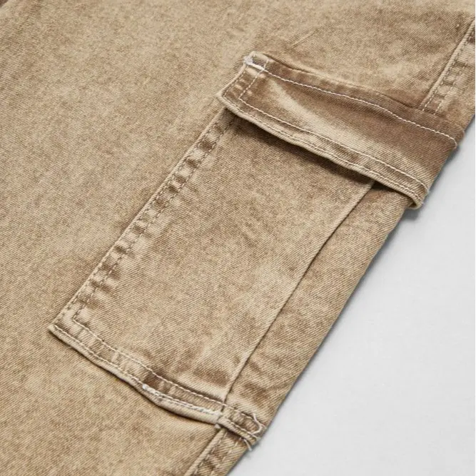 Upgrade your wardrobe with these Wash Flap Pocket High Rise Flare Cargo Pants, perfect for all seasons.