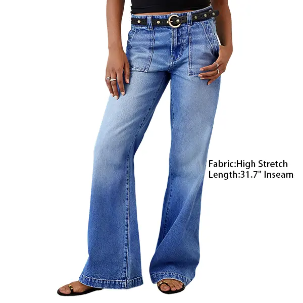 These jeans boast a mid-waist design for ultimate comfort and style. The modern bootcut cut offers a fashionable silhouette. The 31.7" inseam ensures a perfect length for versatile wear. The wash adds a unique charm, suitable for various occasions. Pair them with your favorite tops for a chic ensemble. No belt is included, allowing for customization.
