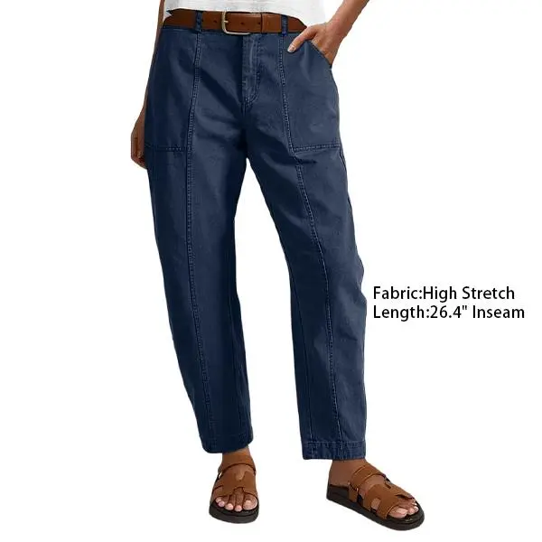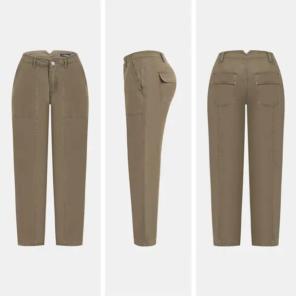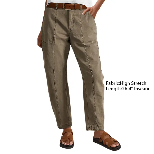 Discover the Flamingals Solid Stitch Detail Mid Waist Carrot Leg Crop Pants. These pants offer a modern silhouette with a mid-waist design and carrot leg cut. The solid stitch detail adds a subtle touch of elegance. Perfect for versatile styling, these crop pants are designed without a belt. Ideal for a chic, contemporary look. Inseam length is 26.4".