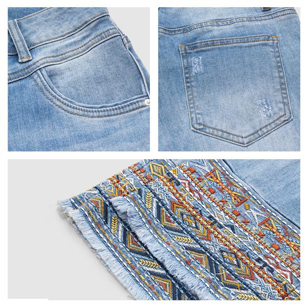 Seriously, how cute are these super stretchy BoHo embroidery detailed cropped jeans? Love the stitching on them and the details on it as well. #jeans #denim #outfitinspo #bohovibe #momfit