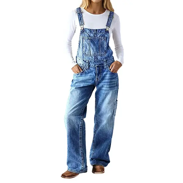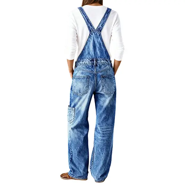 ·Design: Flamingals Wash Multi Pocket Mid Waist Straight Leg Overalls offer a versatile design with multiple pockets.