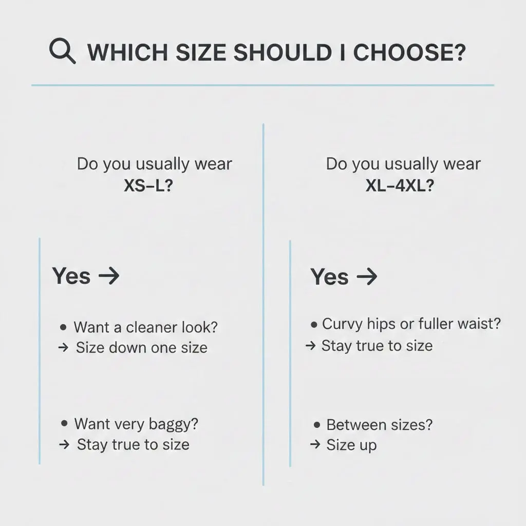 Because of the relaxed barrel cut, sizing depends on your body type and the look you want.