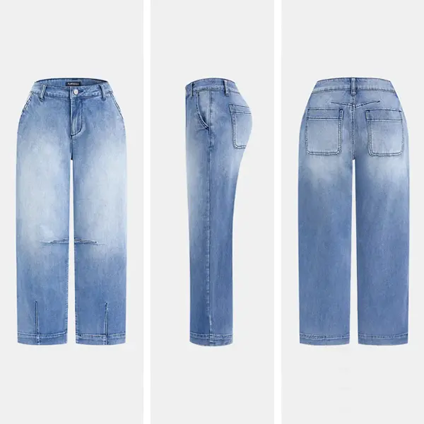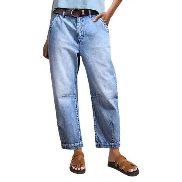 ·Barrel silhouette: wide through the thigh and knee, then tapered at the hem