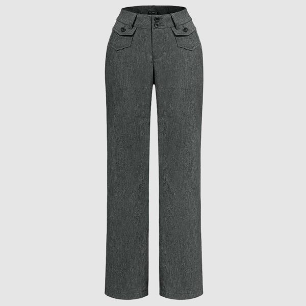 These pants are designed with a mid-rise waist and straight leg cut. They offer a comfortable fit, making them ideal for daily wear. The button-up front allows for a customizable look. Pair them with your favorite tops for a complete outfit. Experience the blend of style and functionality.