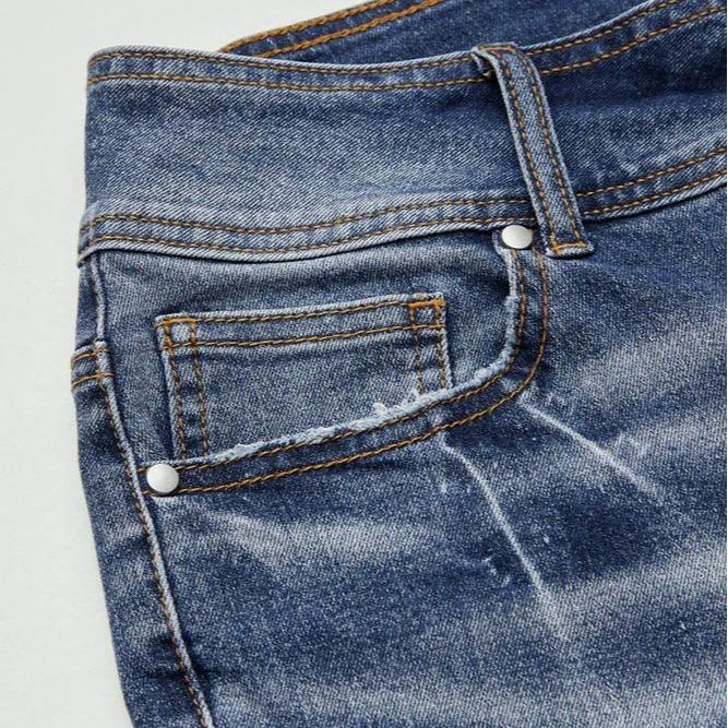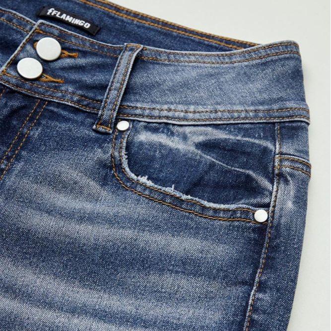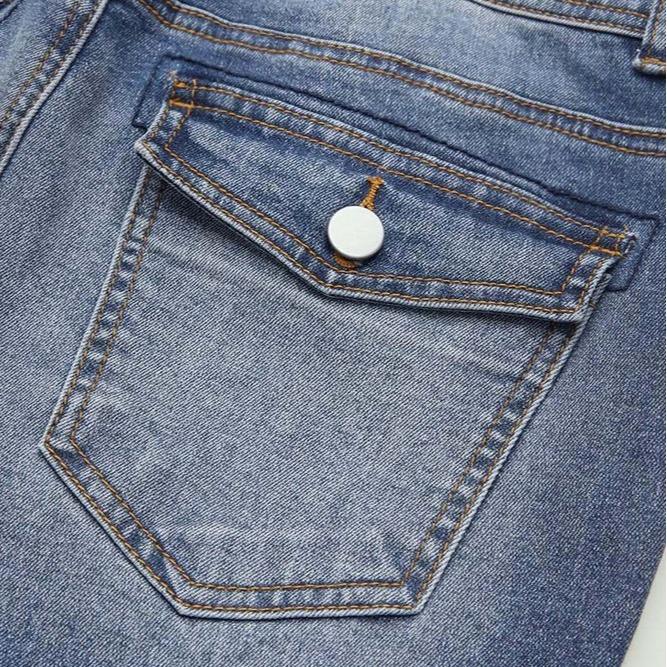 ·Pocket Design: Equipped with flap pockets on the backside, these jeans allow you to carry small essentials in style.