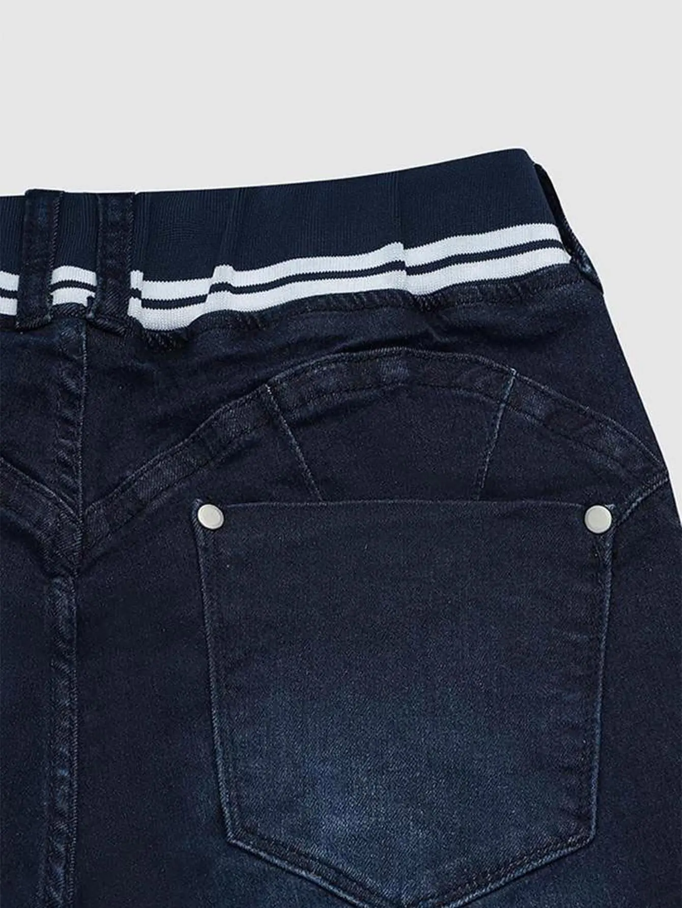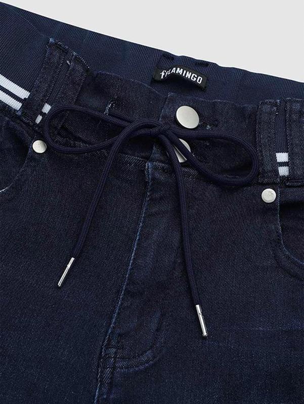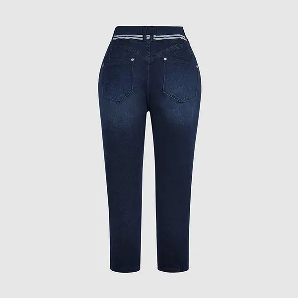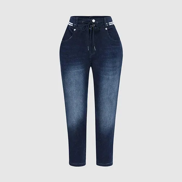 Discover the perfect blend of style and comfort with these wash contrast binding double button drawstring mid waist capri jeans.