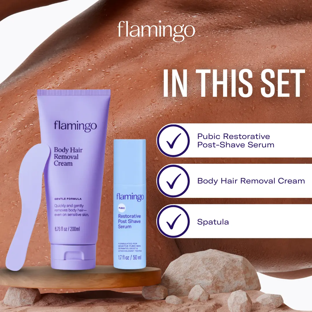 Experience pain-free hair removal with Flamingo’s gentle body hair removal cream. Designed for sensitive skin, it removes hair quickly and easily. Includes a spatula for touch-free application and step-by-step instructions for smooth results.