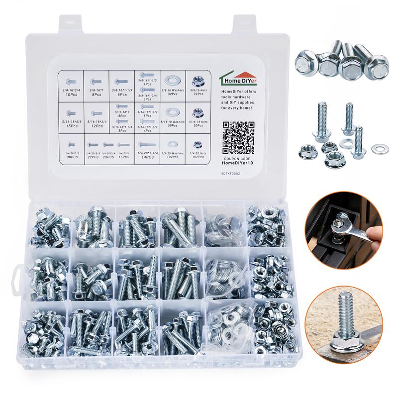 ·Model: 549 pieces of flange hex bolts, nuts, and flat washers kit. Versatile use: Suitable for electronic devices, home appliances, communication tools, and various precision machinery instruments. Total quantity: 549 pieces. Dimensions of the package: 27 x 17.9 x 4.2 cm or 10.62 x 7.04 x 1.65 inches. Weight of the product: 3701 grams. Contents of the package: (Quantity x Thread Size x Length) Flange hex bolts: M6 (0.23 inches): 305 pieces, including 30 pieces of M6 x 12mm (0.23 x 0.47 inches) and 22 pieces of M6 x 16mm (0.23 x 0.62 inches).20 pieces of M6 screws measuring 20mm (0.23 x 0.78 inches), 15 pieces of M6 screws measuring 25mm (0.23 x 0.98 inches), 14 pieces of M6 screws measuring 30mm (0.23 x 1.18 inches), 149 pieces of M8 screws (0.31 inches), 15 pieces of M8 screws measuring 16mm (0.31 x 0.62 inches), 12 pieces of M8 screws measuring 20mm (0.31 x 0.78 inches), 8 pieces of M8 screws measuring 25mm (0.31 x 0.98 inches), 5 pieces of M8 screws measuring 30mm (0.31 x 1.18 inches), 5 pieces of M8 screws measuring 35mm (0.31 x 1.37 inches), 4 pieces of M8 screws measuring 40mm (0.31 x 1.57 inches), 95 pieces of M10 screws (0.39 inches), 10 pieces of M10 screws measuring 20mm (0.39 x 0.78 inches), 8 pieces of M10 screws measuring 25mm (0.39 x 0.98 inches), 6 pieces of M10 screws measuring 30mm (0.39 x 1.18 inches), and 4 pieces of M10 screws measuring 35mm (0.39 x 1.37 inches).3 pieces of M10 x 40mm (0.39 x 1.57 inches) Flange Hex Nuts: 102 pieces of M6 (0.23 inches), 50 pieces of M8 (0.31 inches), 32 pieces of M10 (0.39 inches). Flat Washers: 102 pieces of M6 (0.23 inches), 50 pieces of M8 (0.31 inches), 32 pieces of M10 (0.39 inches). All contained in a convenient organizer.