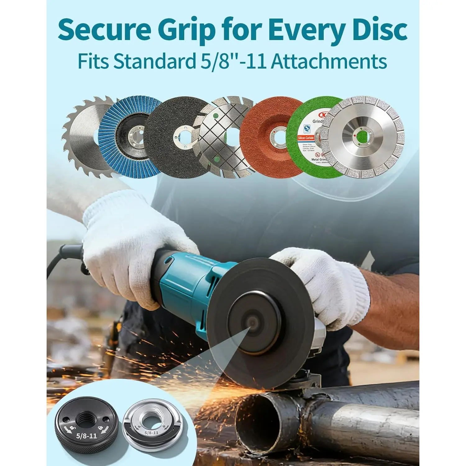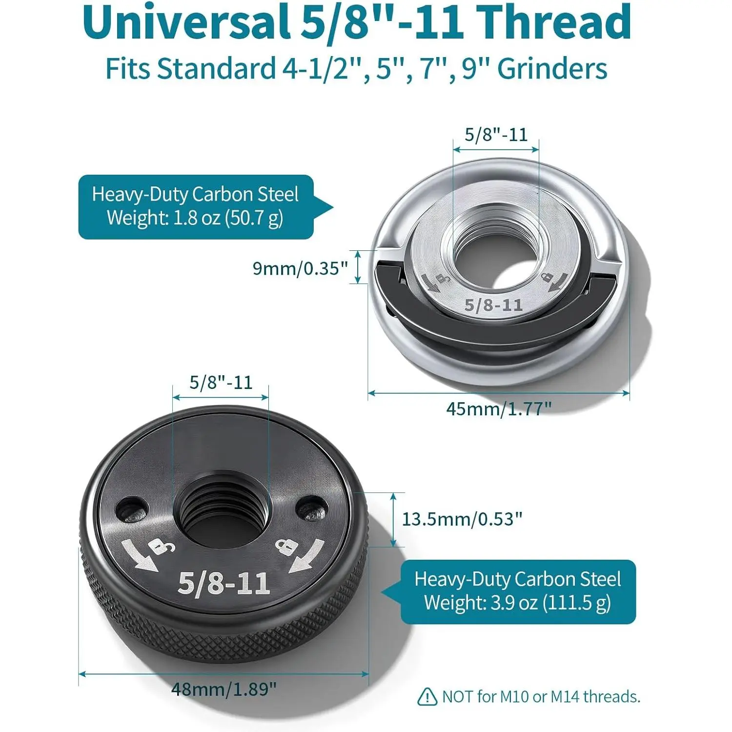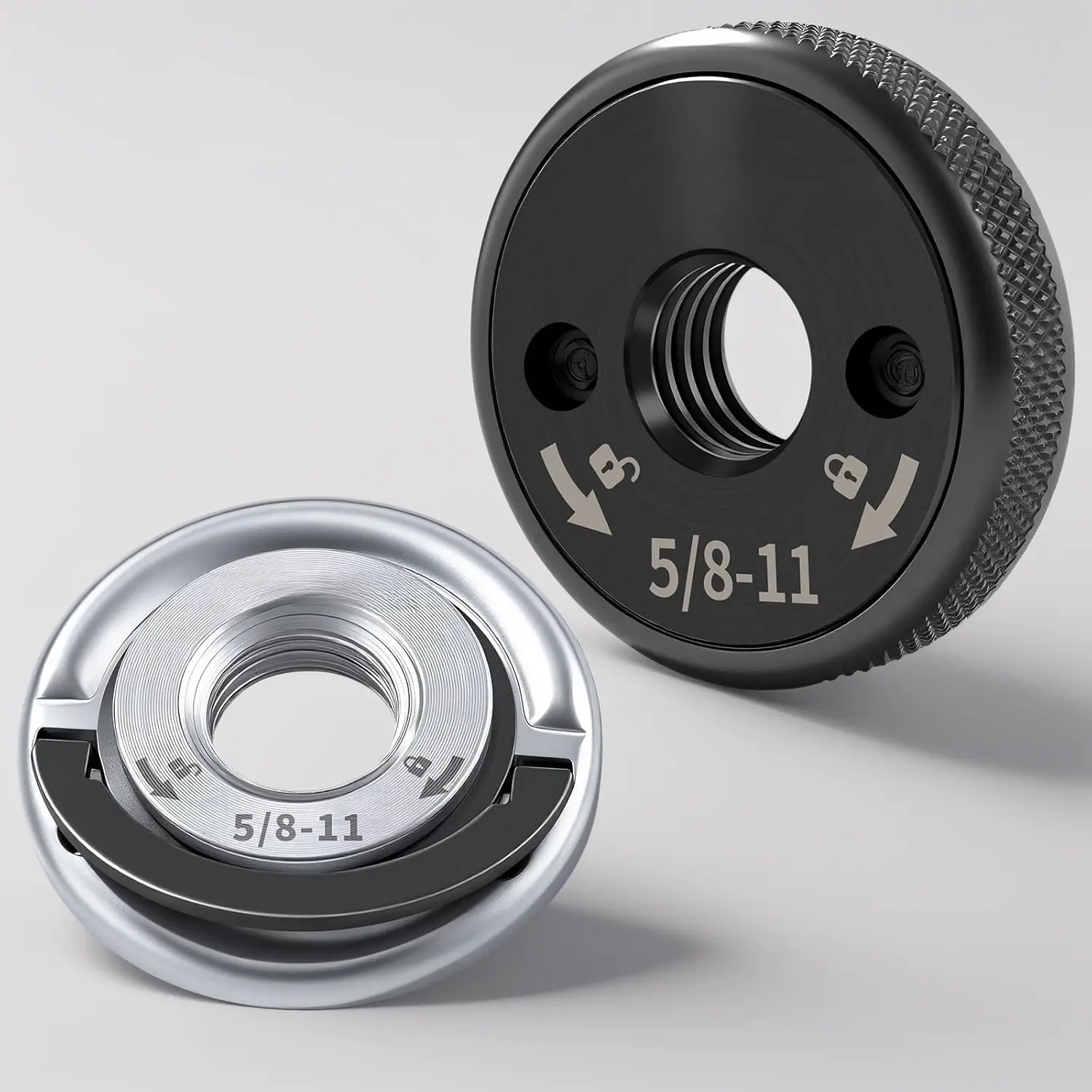 5/8"-11 Angle Grinder Flange Nuts 2-Pack Tool-Free Quick Release Locking Kit Silver D-Ring Knurled Arbor Nut Heavy Duty Self-Locking for 4-1/2 5 7 9 Inch Grinders Must Have DIY Tool Upgrade