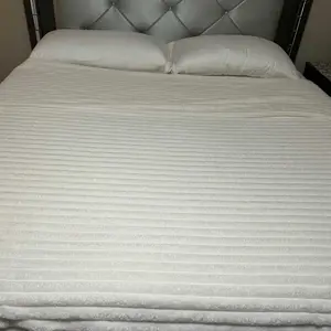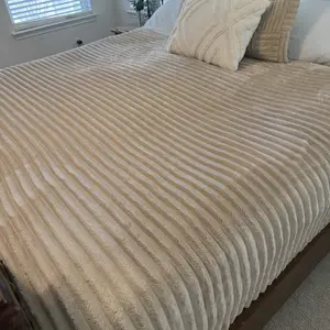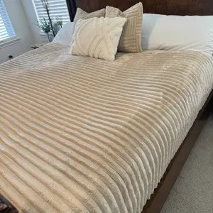 It’s not striped like advertised. It is soft, and does fit my king size bed. Appearance just isn’t what was advertised. And it’s fleece on one side, I thought I’d be the same on both sides