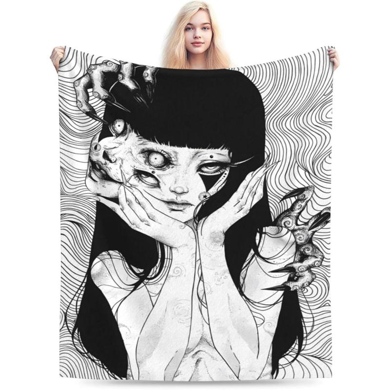 Anime Horror Tomie Girl Revenge Blanket Novelty Art Flannel Throw Blankets for Livingroom Home Sofa Bedroom Women Adults Girls Gift