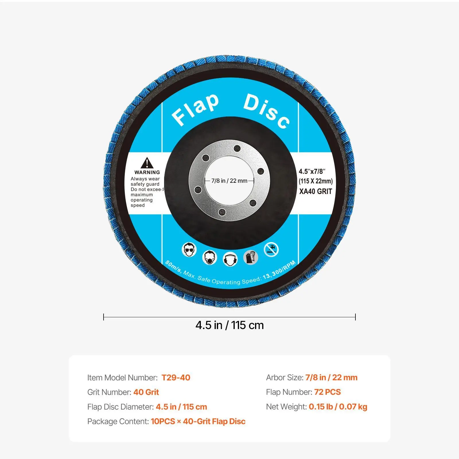 5. VEVOR Flap Discs 40 Grit, TikTokShopBlackFriday, 4-1/2" x 7/8" Flap Discs for Angle Grinder, Type 29 Zirconia Flap Sanding Disc, Bevel Type Abrasive Grinding Wheels for Deburring, Rust Removal, Sanding, Finishing (10 Pack)