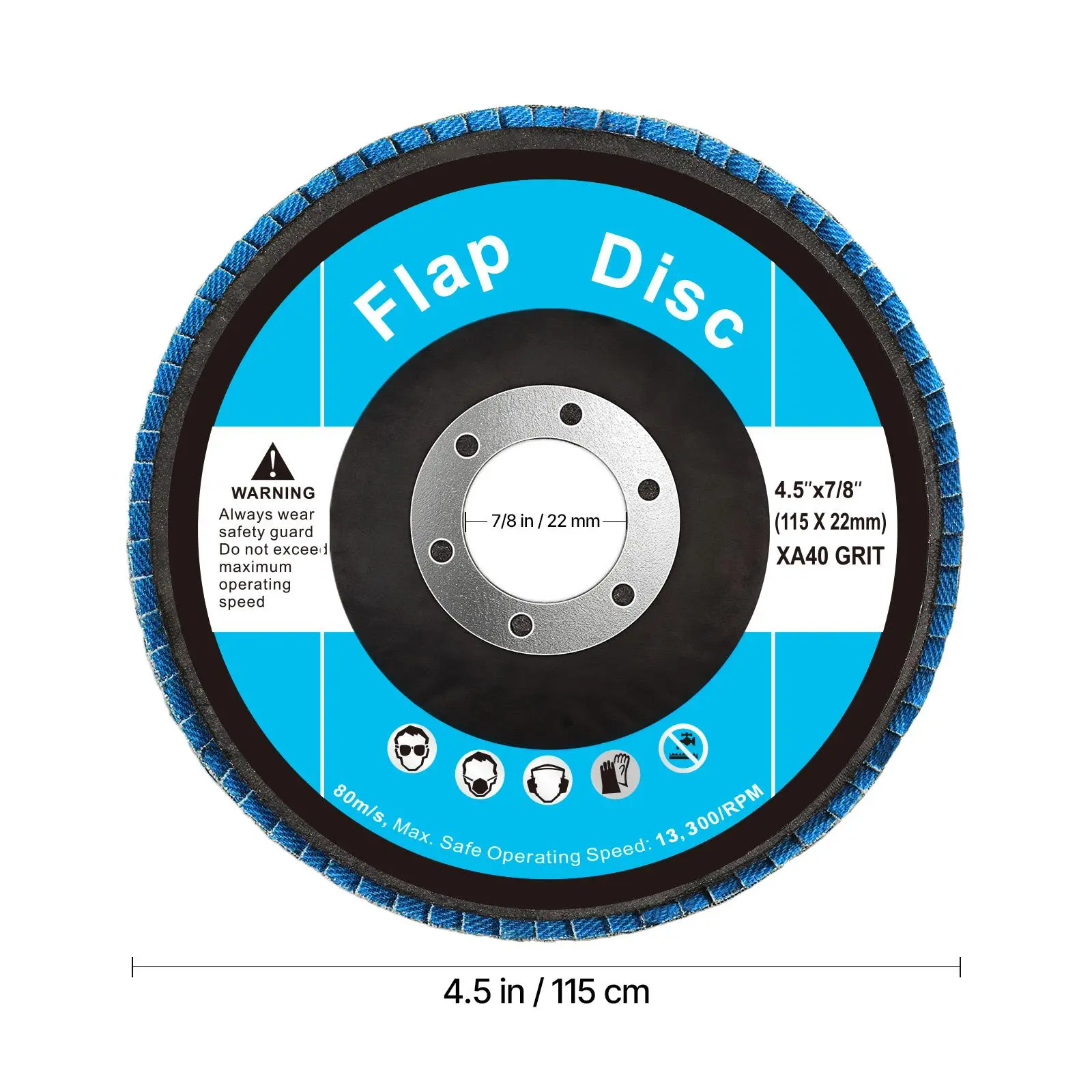 • Size Compatibility: With the diameter of 4.5 inches and the arbor size at 7/8 inches, this flap disc set can be compatible with various 4.5-in and 5-in angle grinders from various renowned brand names, such as DEWALT, Milwaukee, Makita, BOSCH, Metabo, Ryobi, Black & Decker, Kobalt, Craftsman, Skil, Porter Cable, and Ridgid.