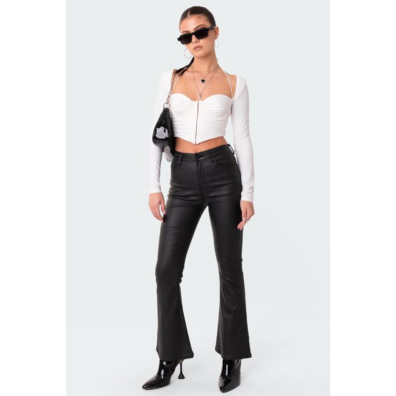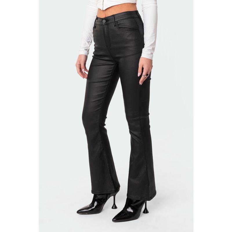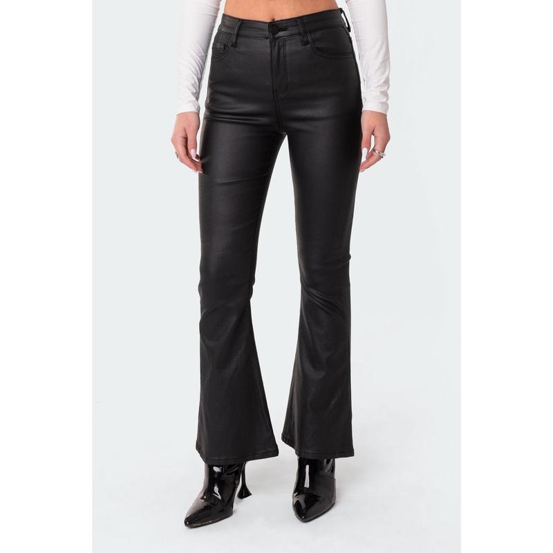 Lovee these pants!!! the perfect length for reference i am (5’3) and the pants are right around ankle length!! sooo cute and flattering and the flare is amazing!!! 10/10 recommend for anyone wanting a cute pair of leather flare pants!!!