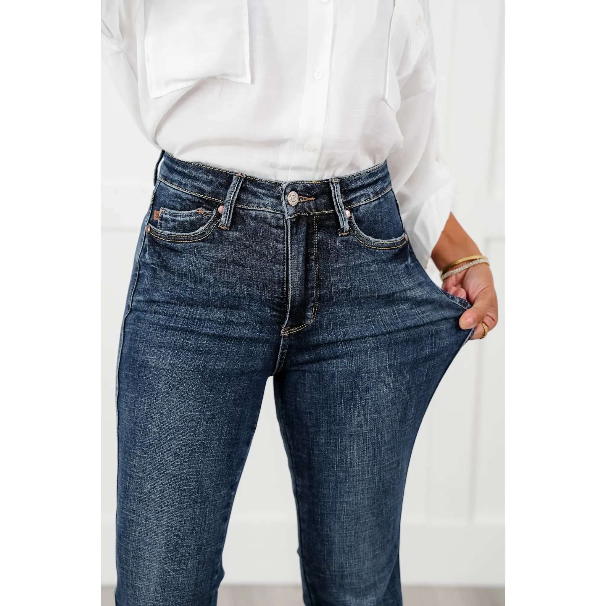 Love Judy Blue Jeans! Love the darkness of these and that they have a raw hem. So can trim if needed.