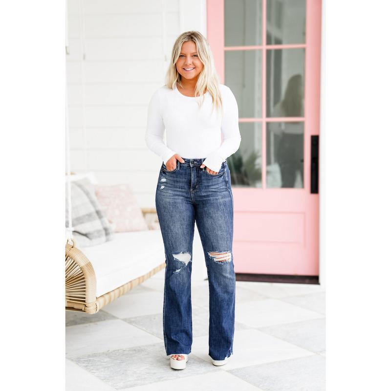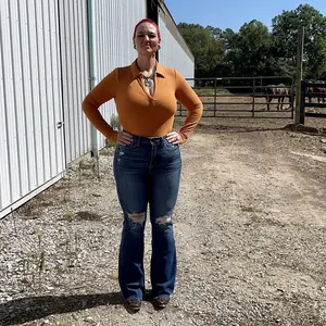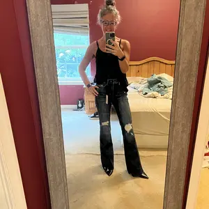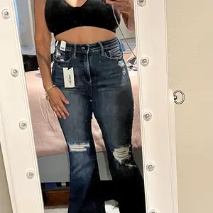 And let's talk about the shape of these! These jeans are a FLARE fit! This fit is the BEST for accentuating a women's figure! If you're curvy they balance everything out perfectly - if you're straight they give the illusion of curves! They are AMAZING!