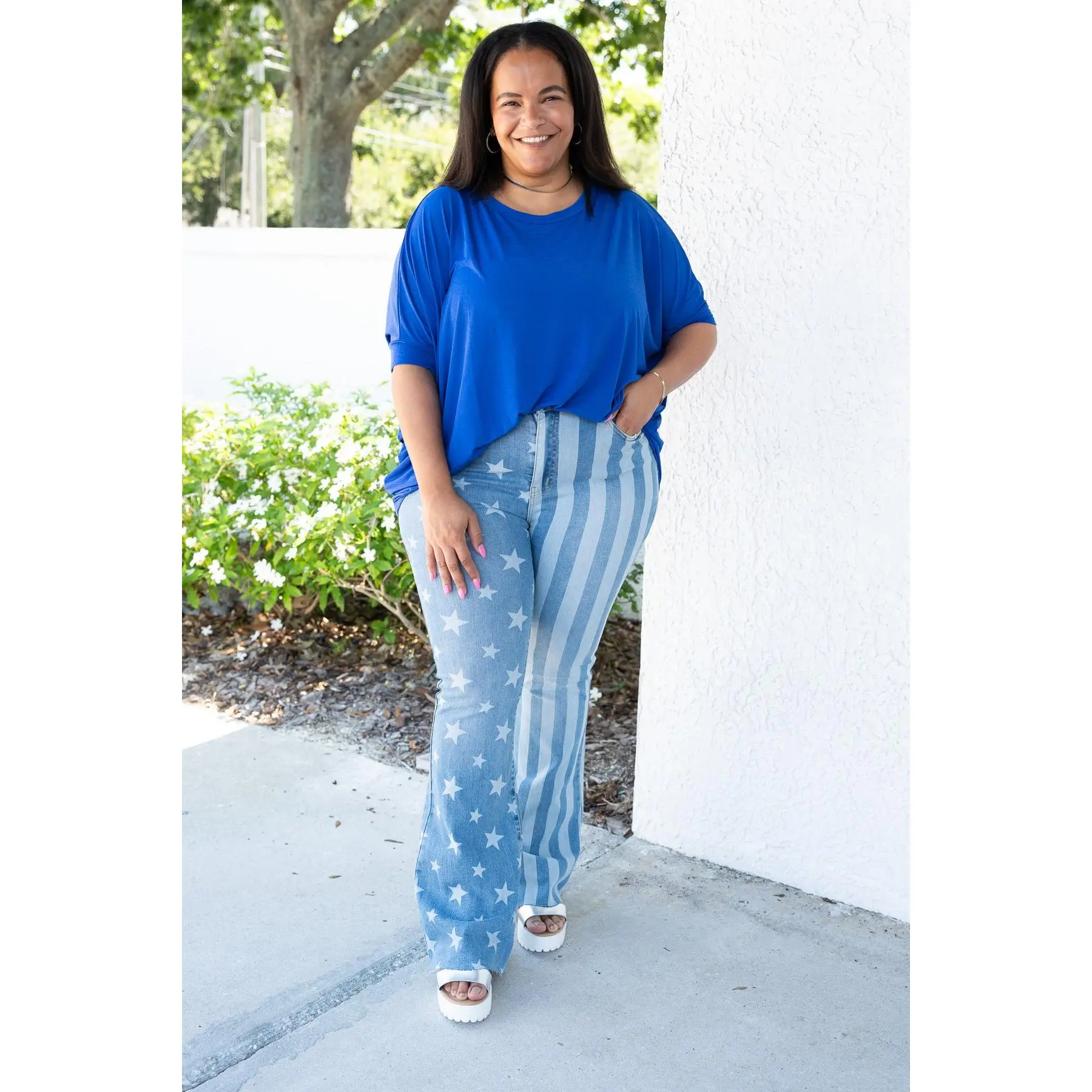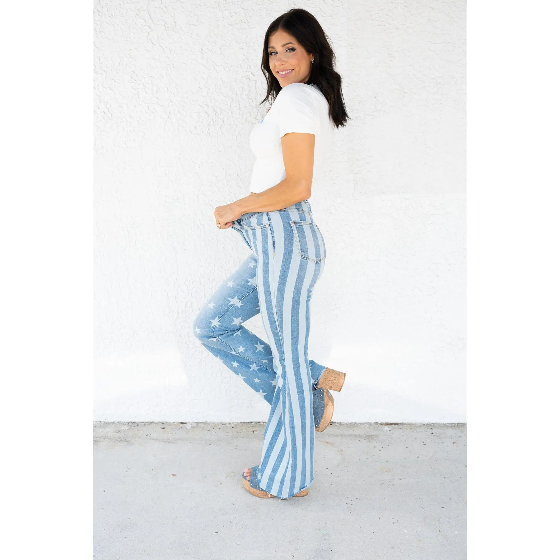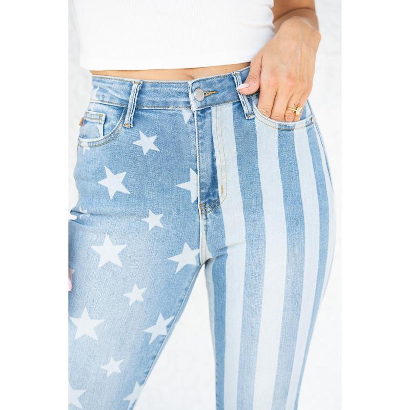 I bought these for July 4th thinking they are a one and done for the holiday. I’m extremely surprised in the great fit and quality. I am now looking to buy other jeans because I love the fit, stretch, flare and everything! Great quick shipping too.