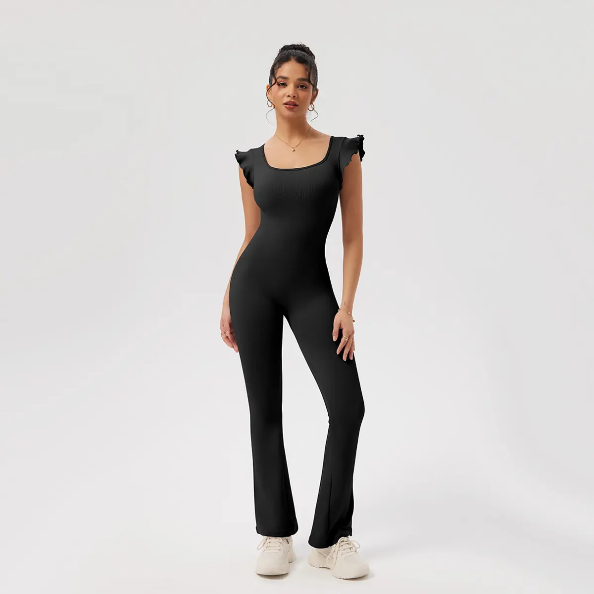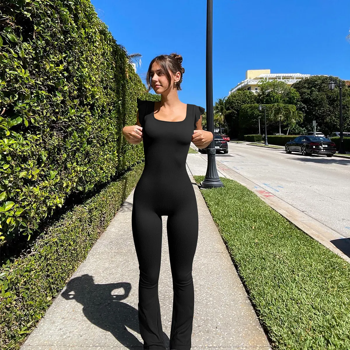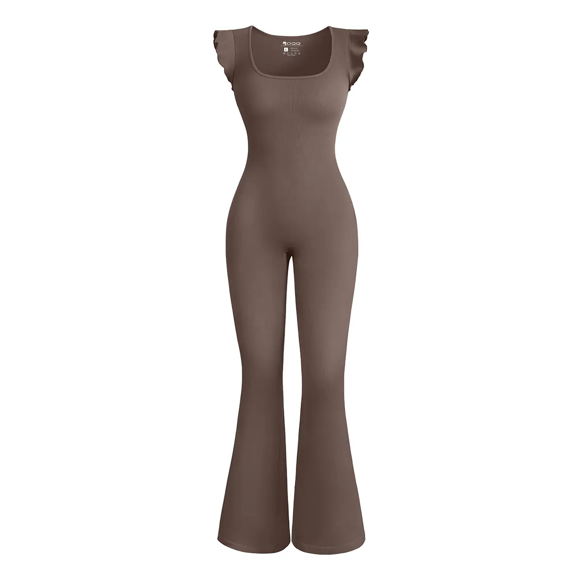 ·Design - This jumpsuit features a zipper-free back and a pull-on design, making it easy to slip on and off.Flare Jumpsuits with ruffle sleeves, and full-length trousers that gently flare at the knee, complete with a soft square neck that shows your sexy curvy, making a seductive look.