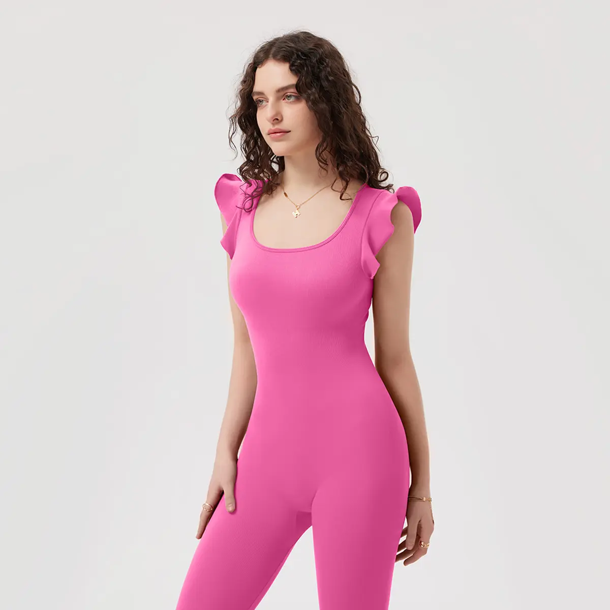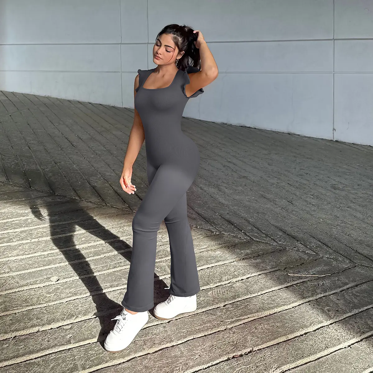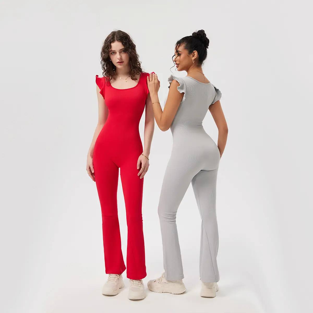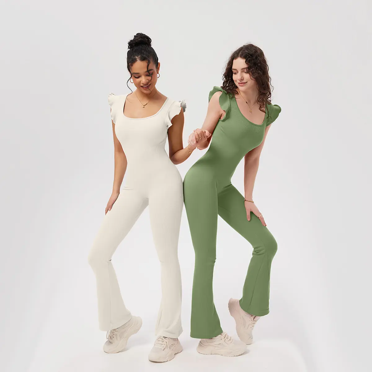 ·Design - This jumpsuit features a zipper-free back and a pull-on design, making it easy to slip on and off.Flare Jumpsuits with ruffle sleeves, and full-length trousers that gently flare at the knee, complete with a soft square neck that shows your sexy curvy, making a seductive look.
